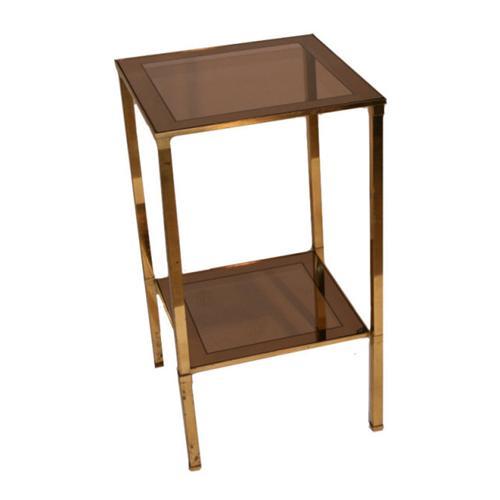 <tr><td>Title:Two Tiered Brass and Glass Side Table</td></tr>