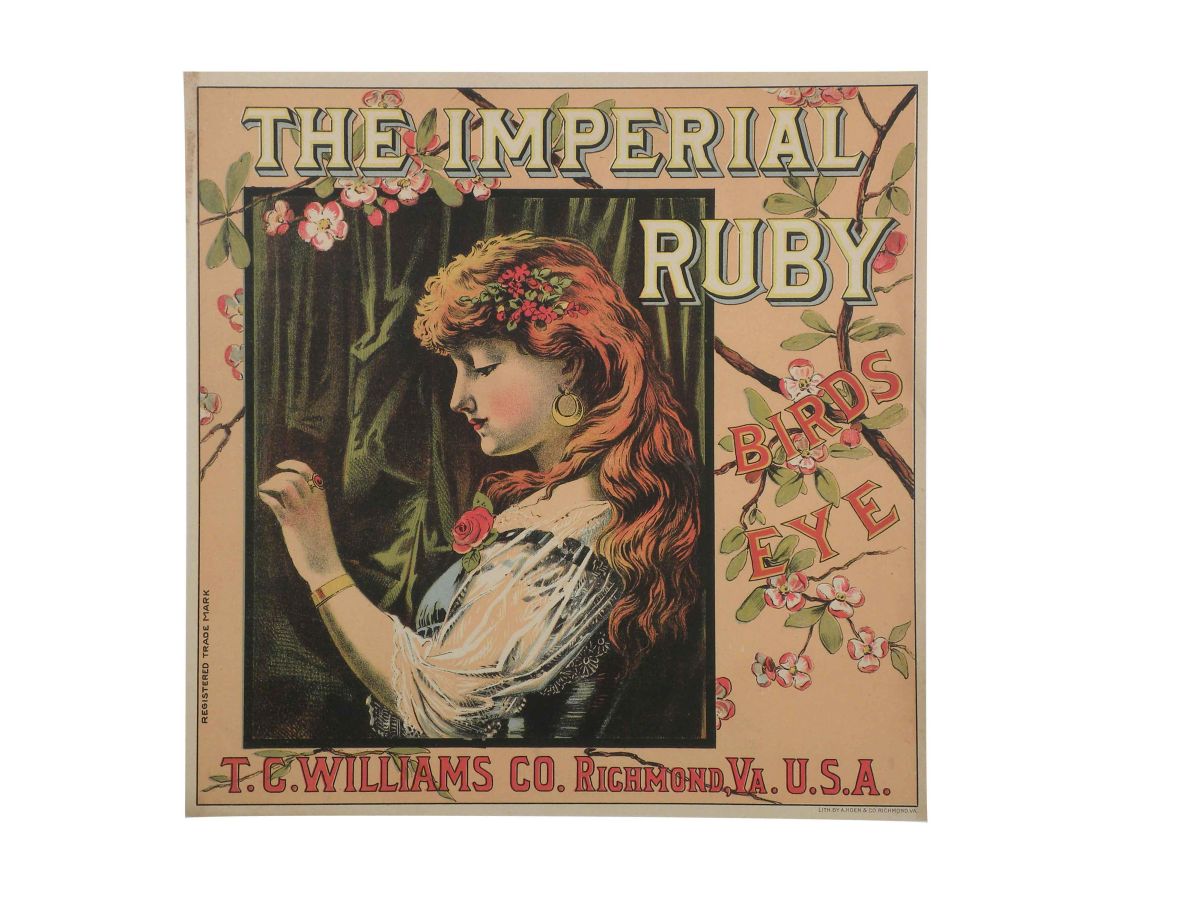Two Tobacco Labels including "The Imperial Ruby" and "La Plata". Excellent condition. Aprox. 10 X 10 inches.