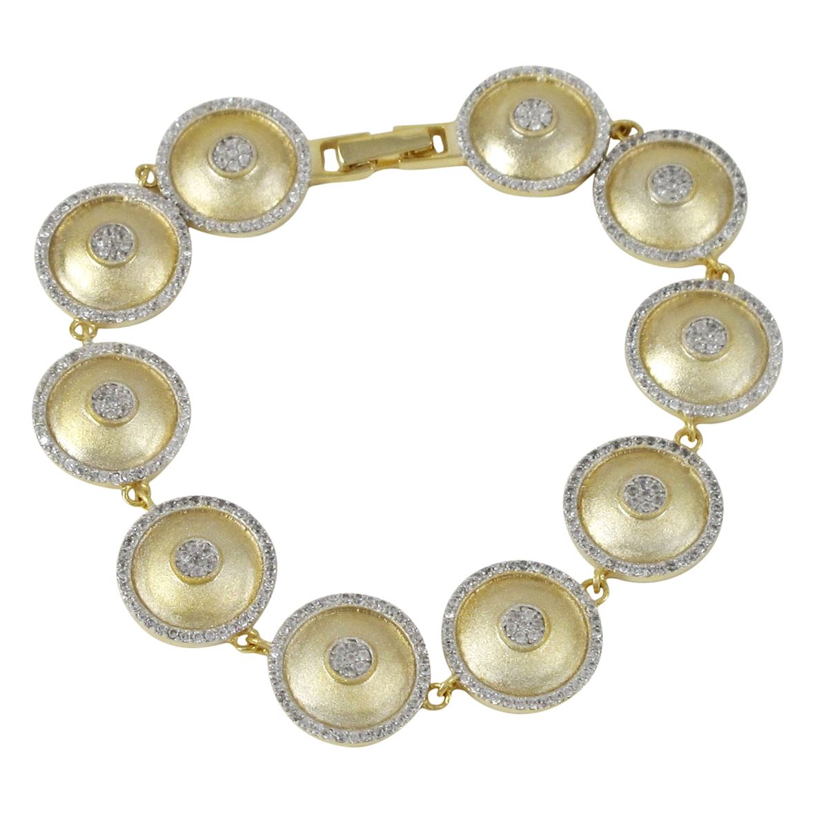 Two Tone Brass 14Mm Circles With CZ Bracelet, 7.25&Quot;