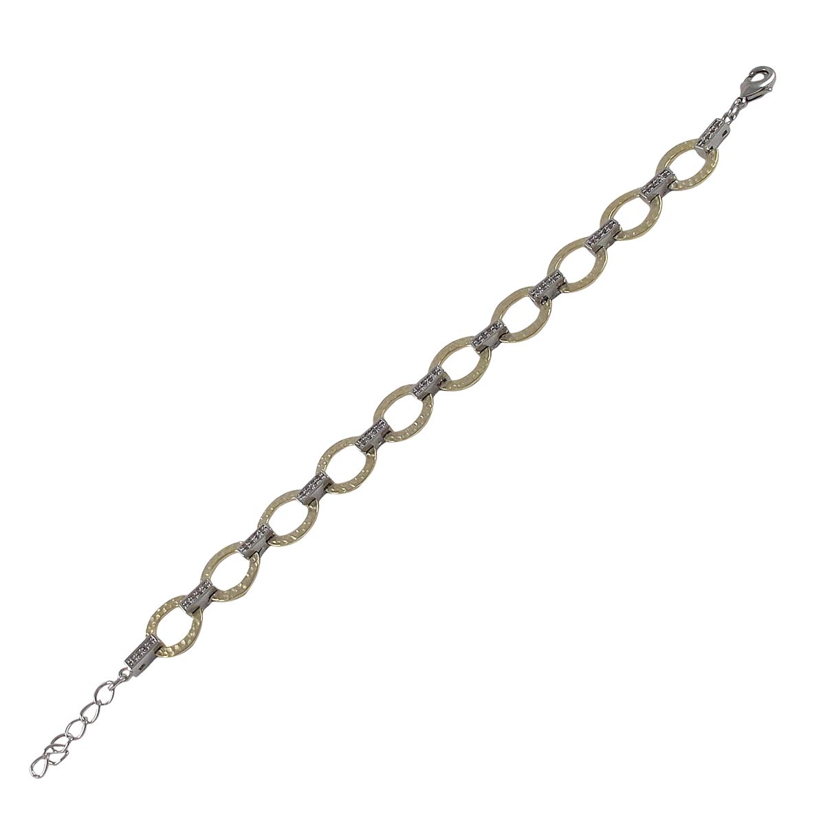 Two Tone Brass, Matte Gold Ovals With CZ Bars Link Bracelet, 7&Quot; 1&Quot;