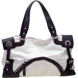 Two-Tone Faux Python Leather Handbag with Zip Front Pocket