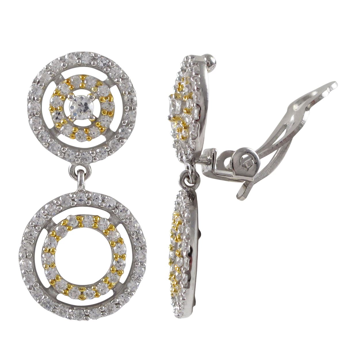 Two Tone Sterling Silver Clip On Earrings, White Czs