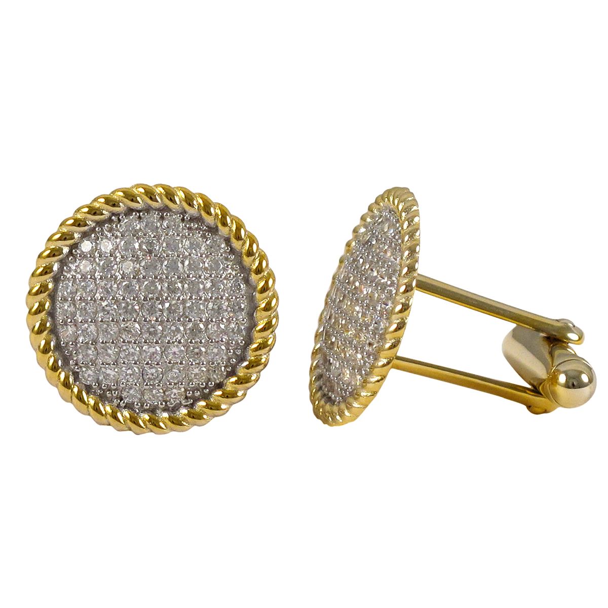 Two Tone Sterling Silver Cuff Link With White CZ Pave 19Mm
