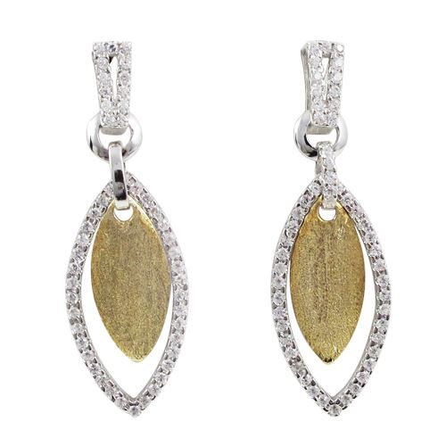 Two Tone Sterling Silver Post Earrings, White Czs, 47Mm Long