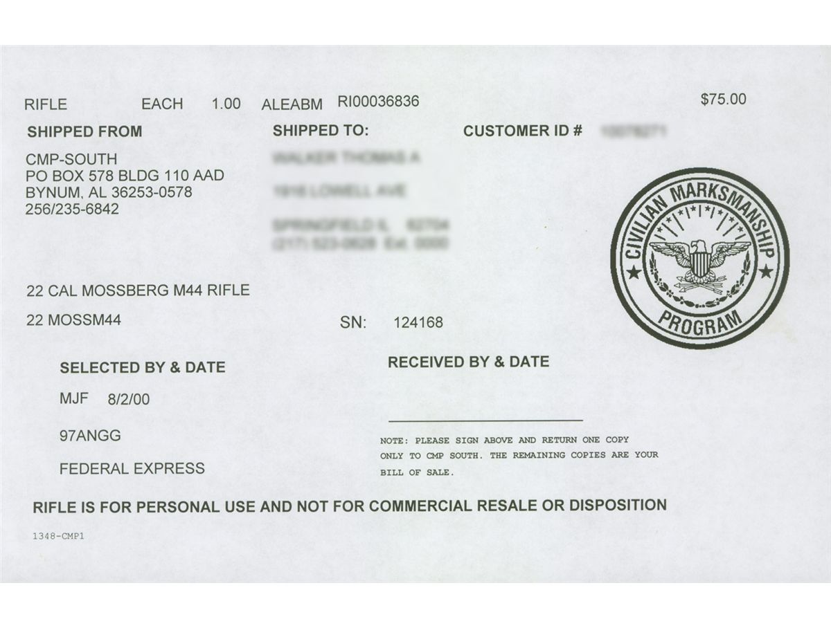 B) Manufacturer: Mossberg O F & Sons Inc Model: 44 U.S.