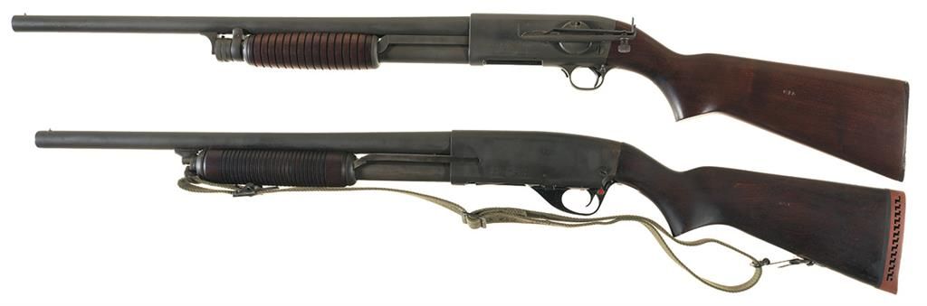 Two U.S. Marked Slide Action Shotguns -A) Ithaca Model 37 Shotgun with Grenade Launcher Sight