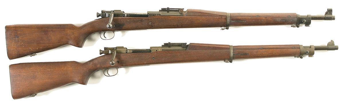 A) Late WWI action, arsenal refurbished, "SA / ordnance bomb / 5-18" marked barrel, standard receiver makings, wartime replacement "C" stock with no visible markings.