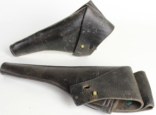 A lot of two indian wars US Cavalry holsters one being for a 7 1/2" Colt SAA, and a 5 1/2 " Artillery single action.