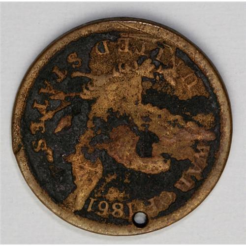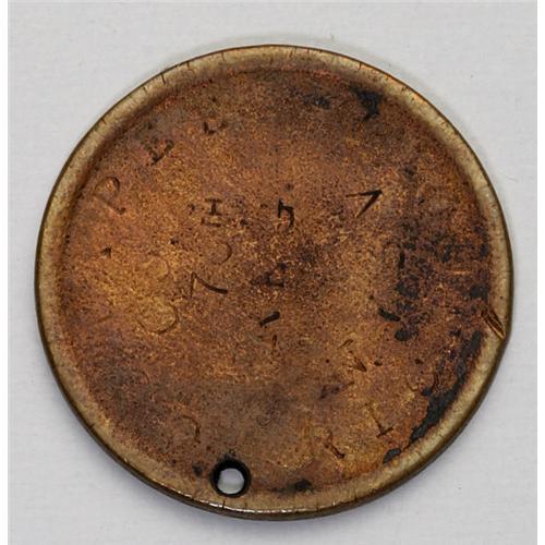 <B>Two Uncertified Civil War Dog Tags.</B></I> Both tags are round, brass, holed at 12 o'clock, have a plain edge, and are 28mm. The lot includes: <B>70th Regiment NYSV,</B></I> issued but name only partly legible, reverse displays Federal eagle and legends WAR OF 1861 and UNITED STATES, corroded and cleaned, consignor states recovered from Gettysburg battlefield; and an <B>Unissued Dog Tag XF40,</B></I> uniface, nine parallel straight lines with peripheral inscription FOUGHT IN BATTLES 1861, 2, & 3 UNITED STATES.<BR><I>From The Troy Wiseman Collection.</B></I>
