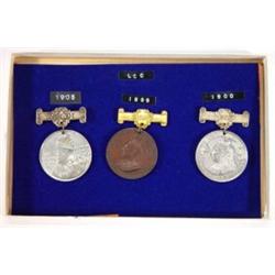 Two Victorian Punctual Attendance medals 1899 and 1900 and a London County Council 1905 Punctual …