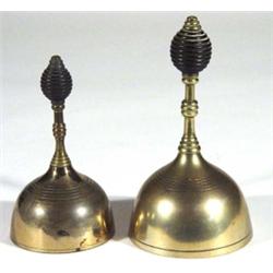 Two Victorian brass domed shaped bells with turned ebony knops, largest 17cm high