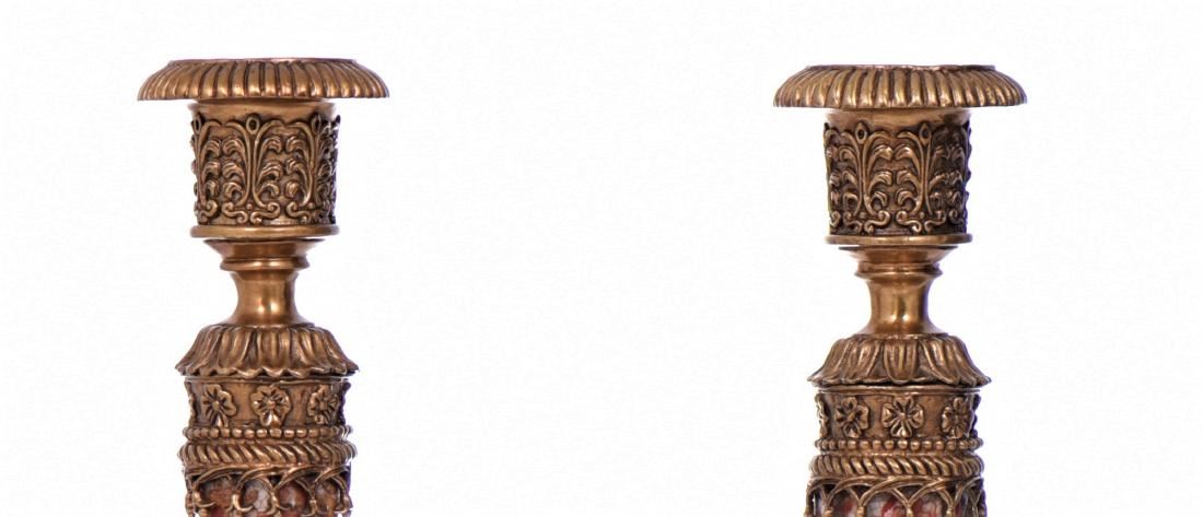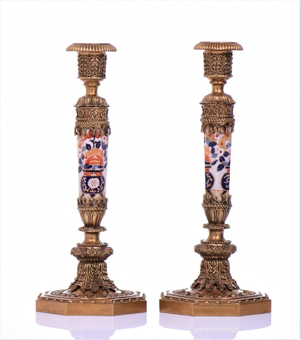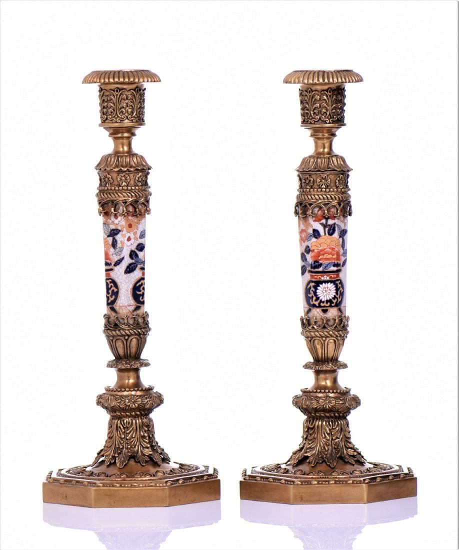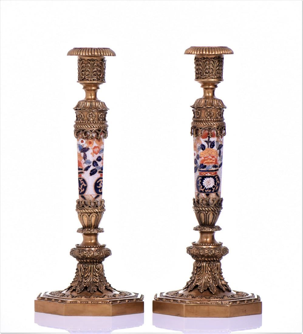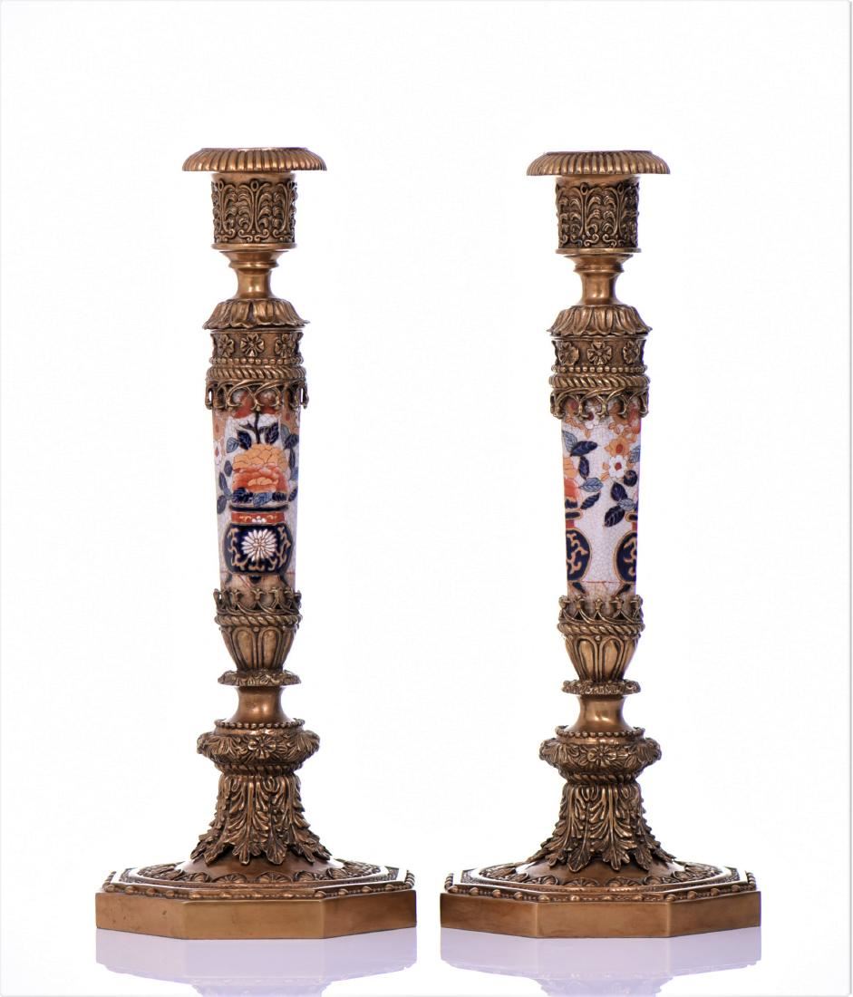 Two Vintage Chinese Bronze And Porcelain Candlesticks, Very Heavy. Estimated less than 50 yrs old. Chinese art is visual art that, whether ancient or modern. Early "stone age art" dates back to 10,000 BC, mostly consisting of simple pottery and sculptures. Chinese art has arguably the oldest continuous tradition in the world. Traditional Chinese painting involves essentially the same techniques as Chinese calligraphy and is done with a brush dipped in black or colored ink. As with calligraphy, the most popular materials on which paintings are made of paper and silk. Chinese ritual sculptures from the Shang and Western Zhou Dynasties come from a period of over a thousand years from c. 1500 and were cast with complex patterns and zoomorphic decoration, but avoid the human figure. Smaller figures in pottery or wood were placed in tombs for many centuries afterwards, reaching a peak of quality in the Tang Dynasty. Small Buddhist figures and groups were produced to a very high quality in a range of media, as was relief decoration of all sorts of objects, especially in metalwork and jade. Sculptors of all sorts were regarded as artisans and very few names are recorded. Chinese ceramic ware shows a continuous development since the pre-dynastic periods, and is one of the most significant forms of Chinese art. Most later Chinese ceramics, even of the finest quality, were made on an industrial scale, thus very few individual potters or painters are known. Many of the most renowned workshops were owned by or reserved for the Emperor, and large quantities of ceramics were exported as diplomatic gifts or for trade from an early date. (Wikipedia) Size and/or Weight: See Measurement Photo. (Photos Represent The Lot Condition.)