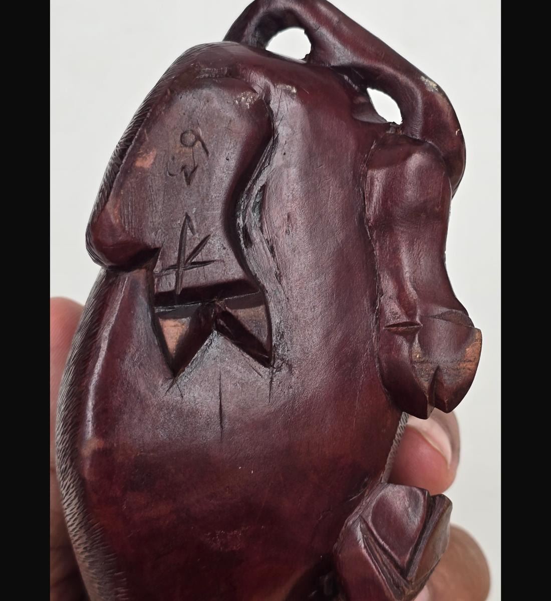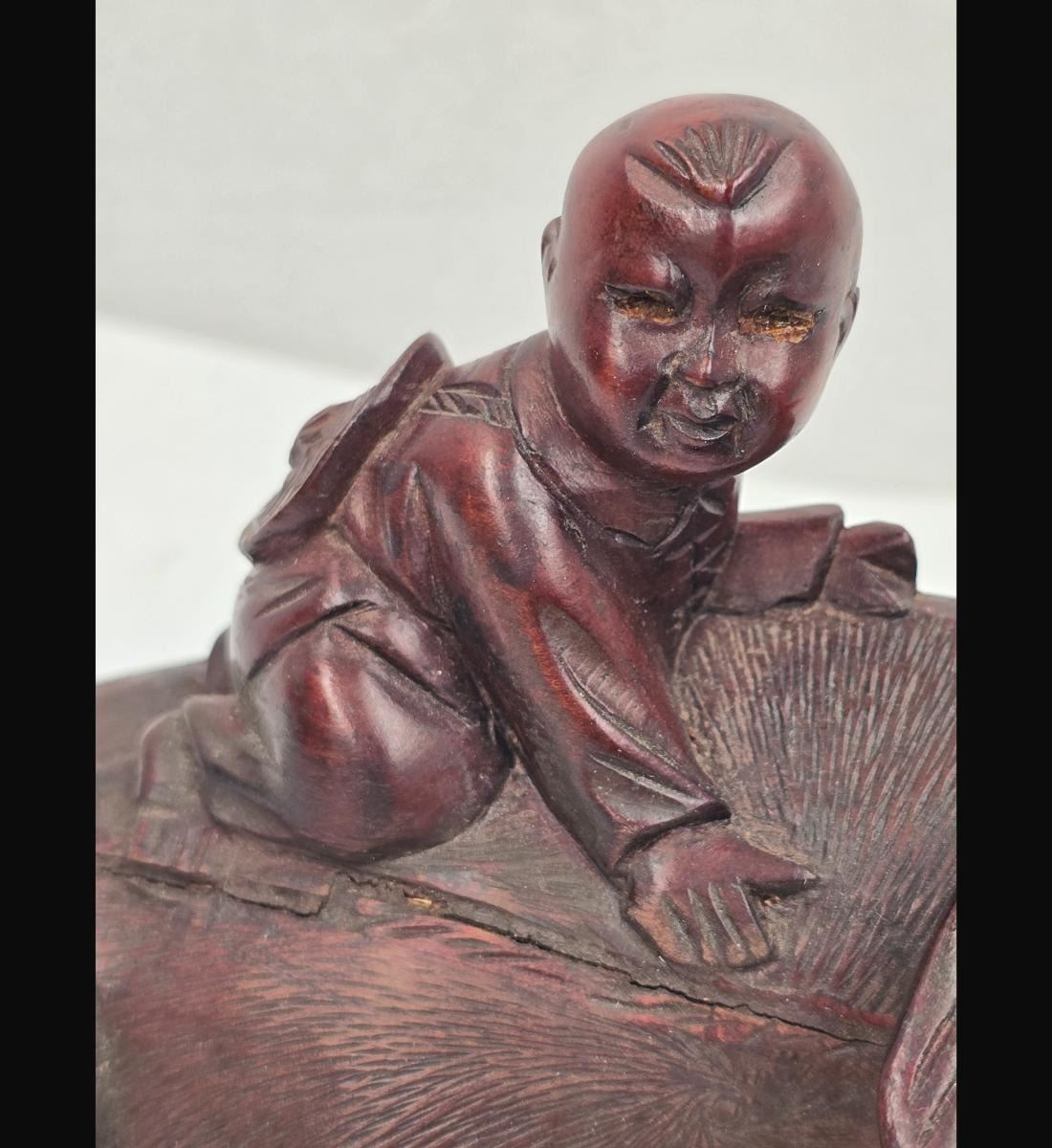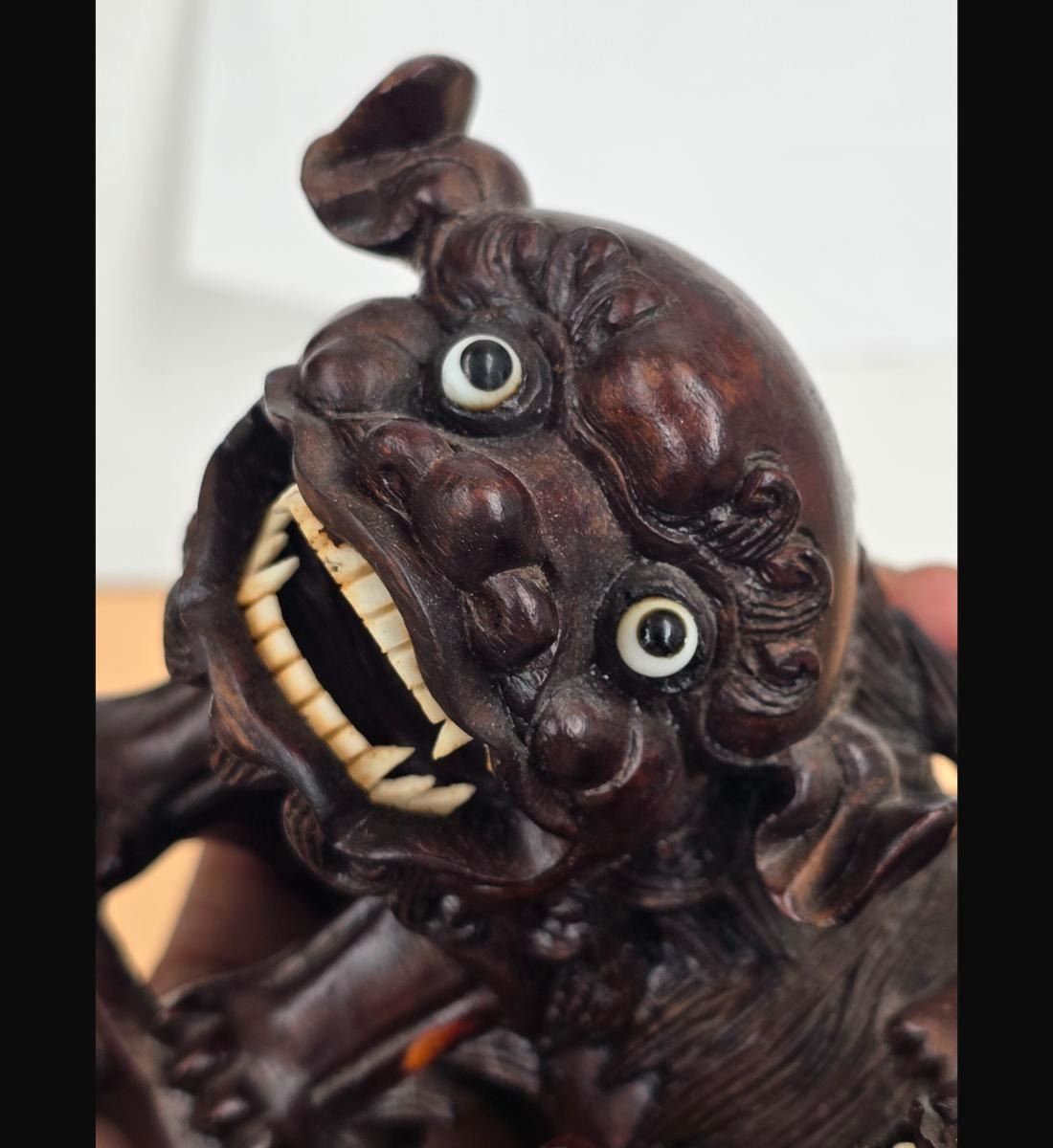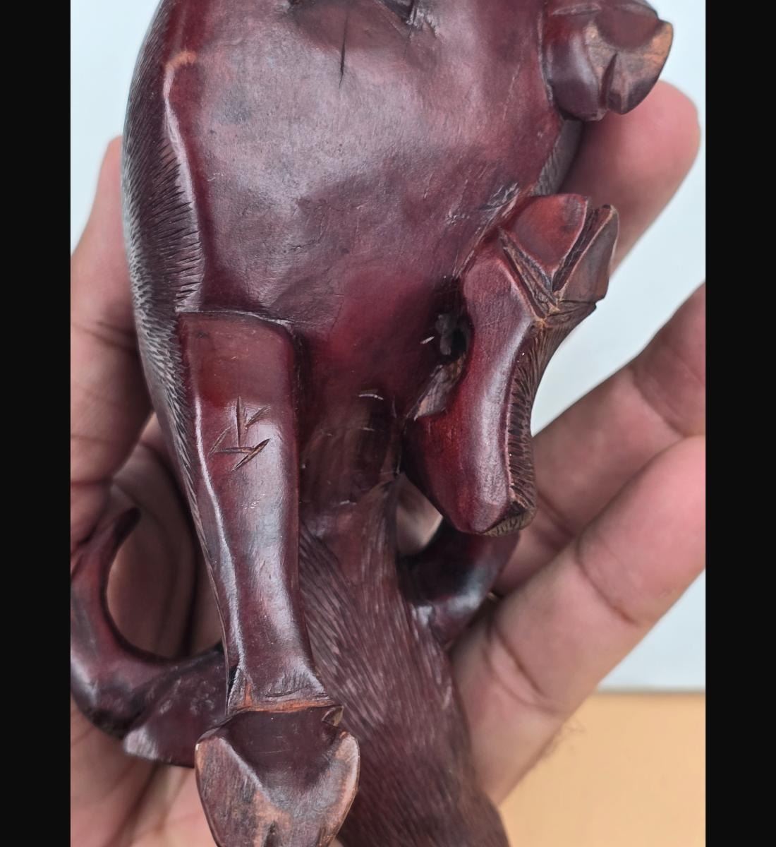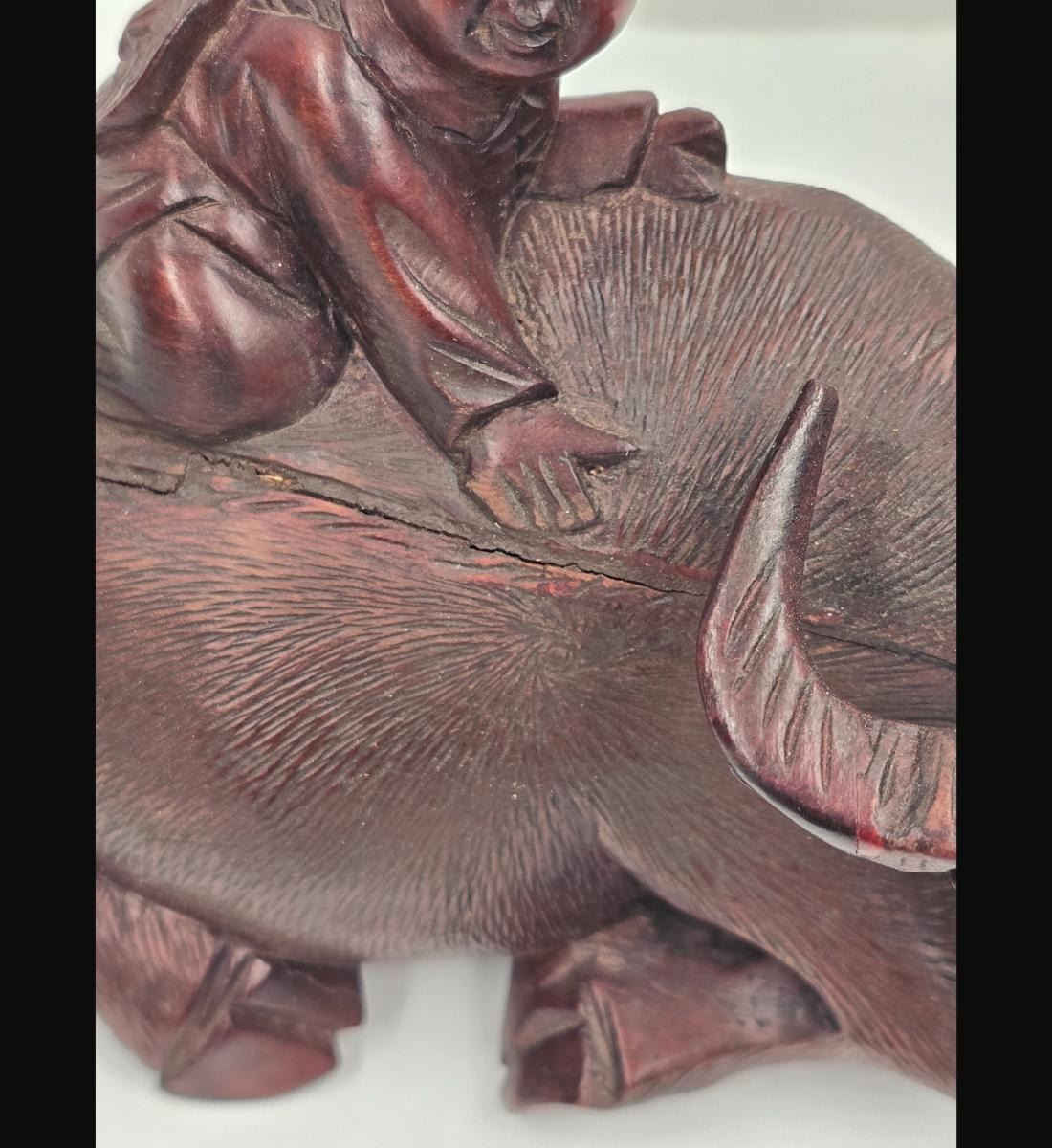 Two Vintage Chinese Carved Wood Figures Foo Dogs And Cow. Dogs Measures approx 6 1/4" X 3 3/4" X 3", Cow 7" X 4". Provenance: One Person Private Estate Central Florida.