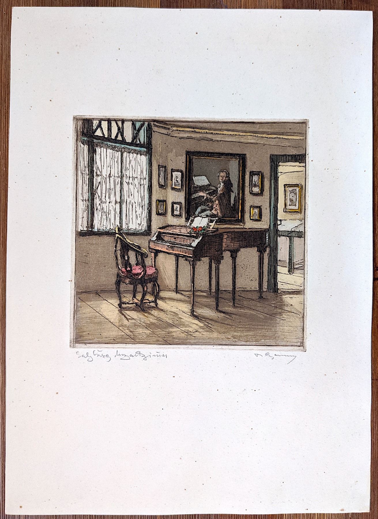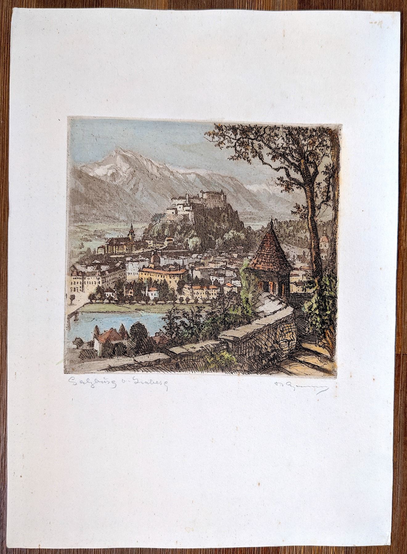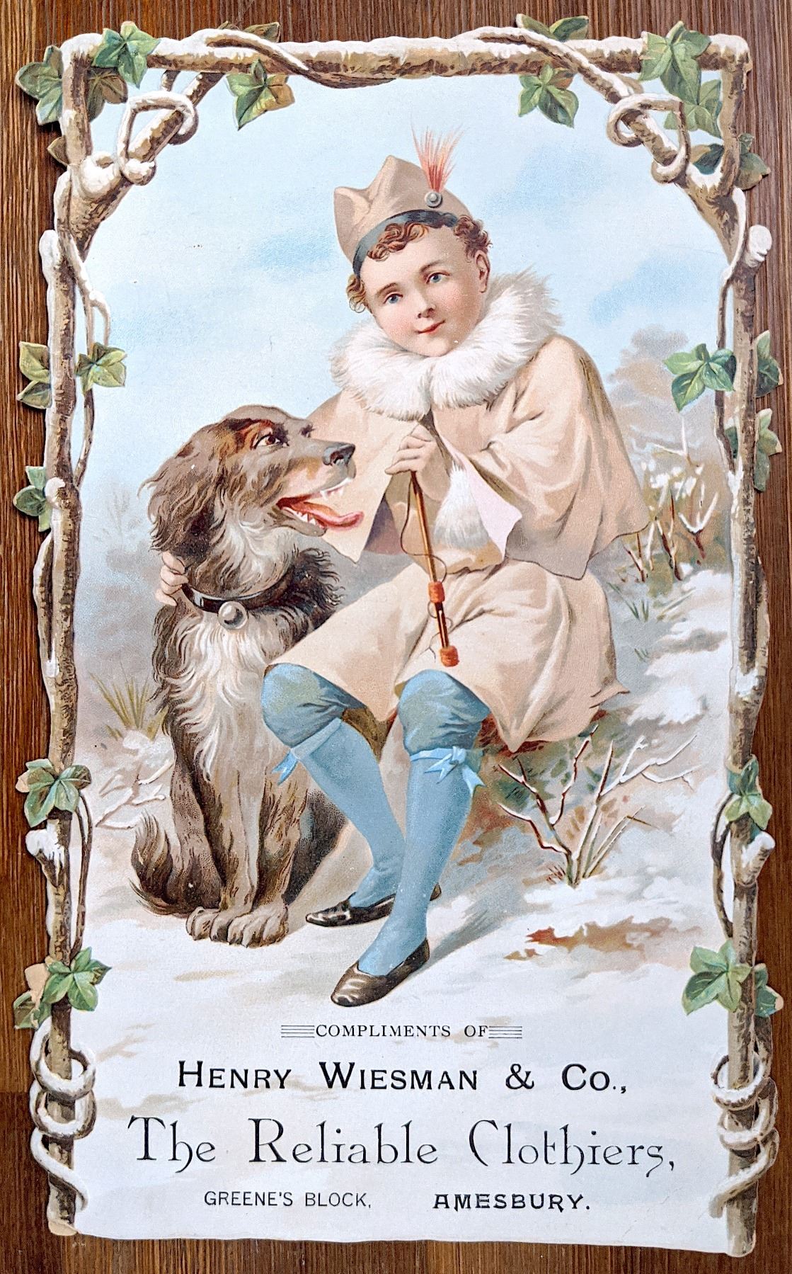 Two Vintage Colored Etchings + Large Advertising Boy and Dog