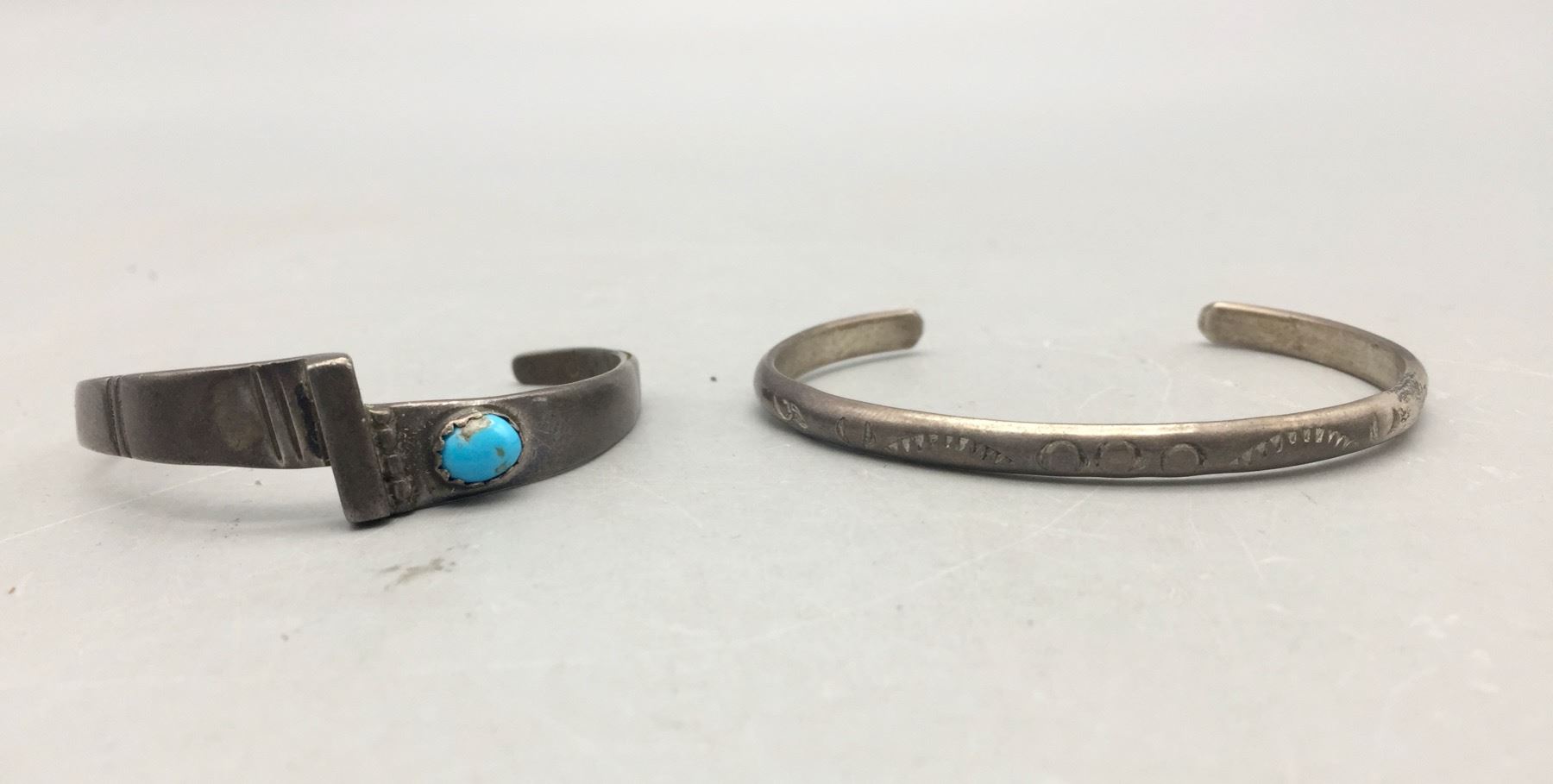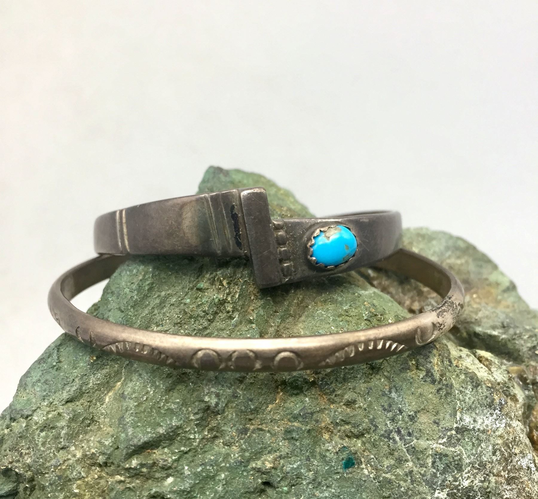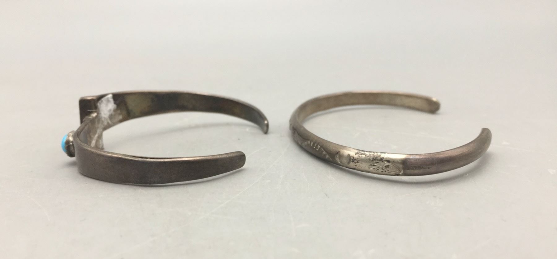 Description: Offered for sale in this lot we have two vintage child’s bracelets. Both have various styles. One is set with a turquoise stone. Both are sterling silver. Maker: Various. Approx. Age: Vintage. Size: Various. Combined weight is 18.5 grams. Condition: Good for their age, normal wear expected. Please look closely at the pictures - they are an important part of our description. Shipping: There will be a $5 handling / packaging fee for shipping this lot. The actual cost of postage will be added on top of that.