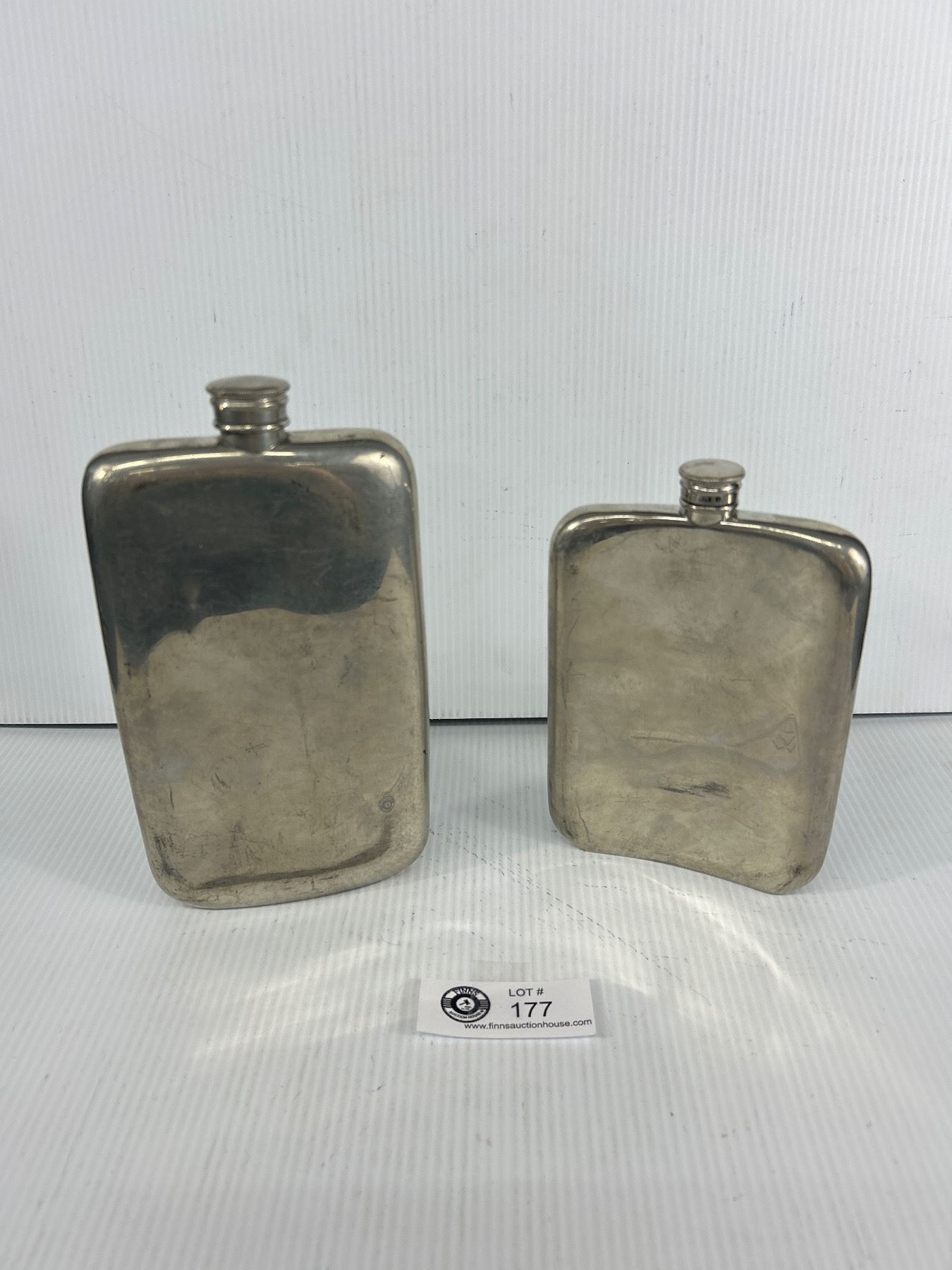 Two Vintage Silverplated Hip Flasks Made in England 8oz&12oz