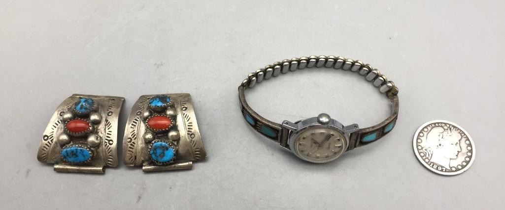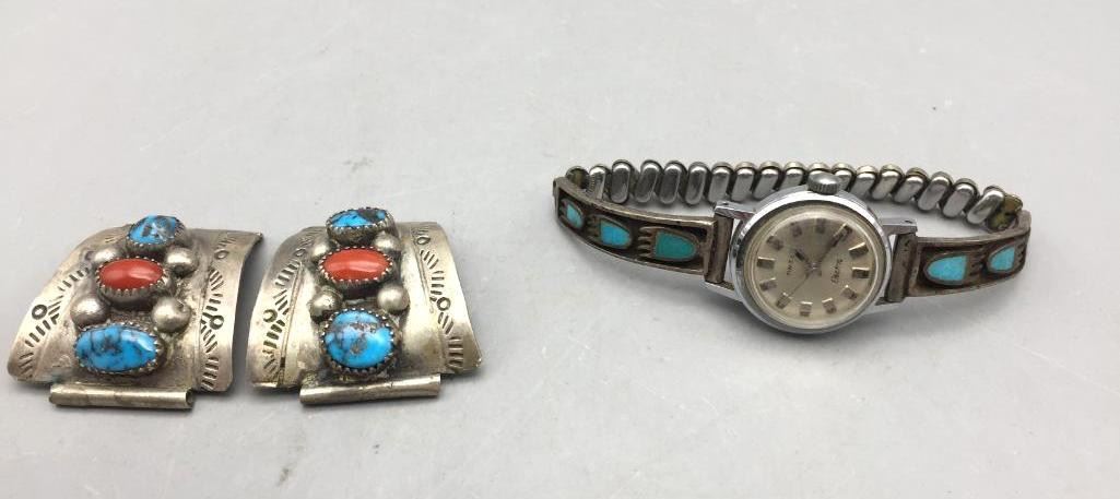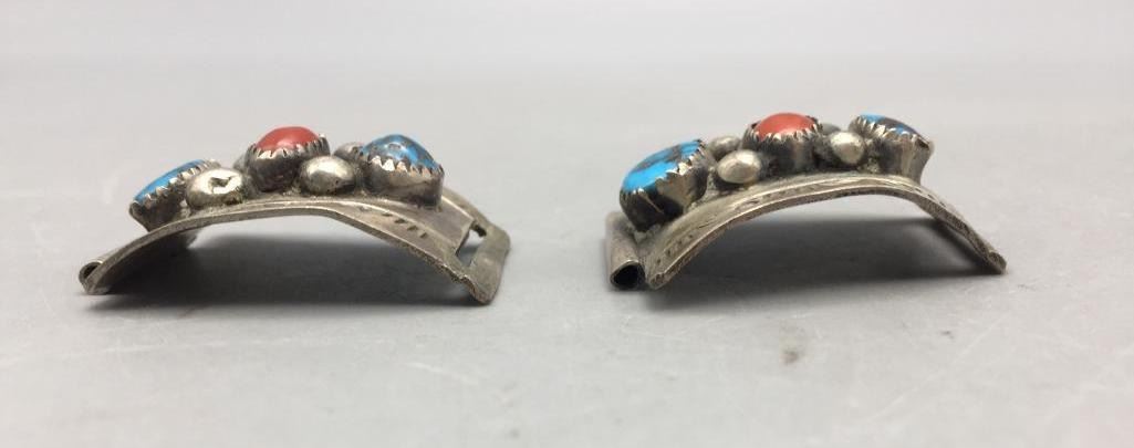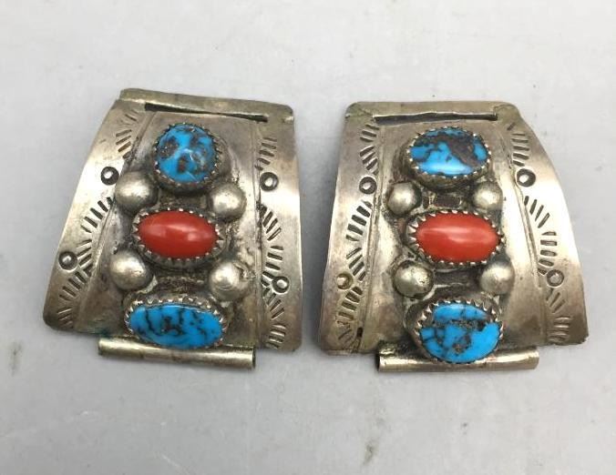 Included for sale in this lot are two pairs of vintage watch tips. One features an inlay turquoise design and the other features turquoise and coral cabochons. These would look great on your watch or convert them for use on your smartwatch. Maker: Unmarked. Approx. Age: Vintage. Size: Varies. Combined weight of 49.3 grams. Condition: Good for its age, normal wear expected. Please look closely at the pictures - they are an important part of our description. Shipping: There will be a $5 handling, packaging fee for shipping this lot. The actual cost of postage will be added on top of that.