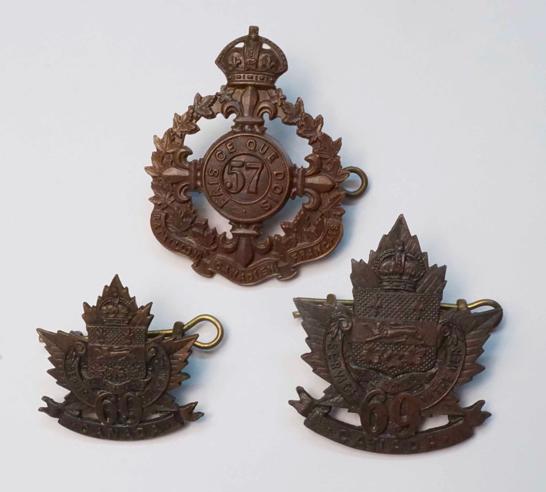 Two WWI Infantry Pieces - 1 Collar 69th "Montreal" , 1 - Badge 57th "Canadiens Français"
