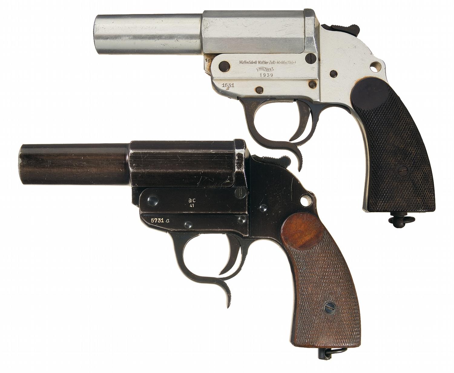 Two WWII Era Walther Nazi Flare Pistols -A) Walther Single Barrel Flare Pistol B) Walther "ac/4