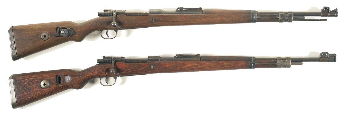 A) Top receiver marked "42" and "1939" with "Eagle/63" proofs. Matching numbers on various parts except the front barrel band and stock with "Eagle/WaA63" proofs on floor plate and tang. Complete with leather sling and push-on muzzle cap. Top of forearm is very loose and cracked.