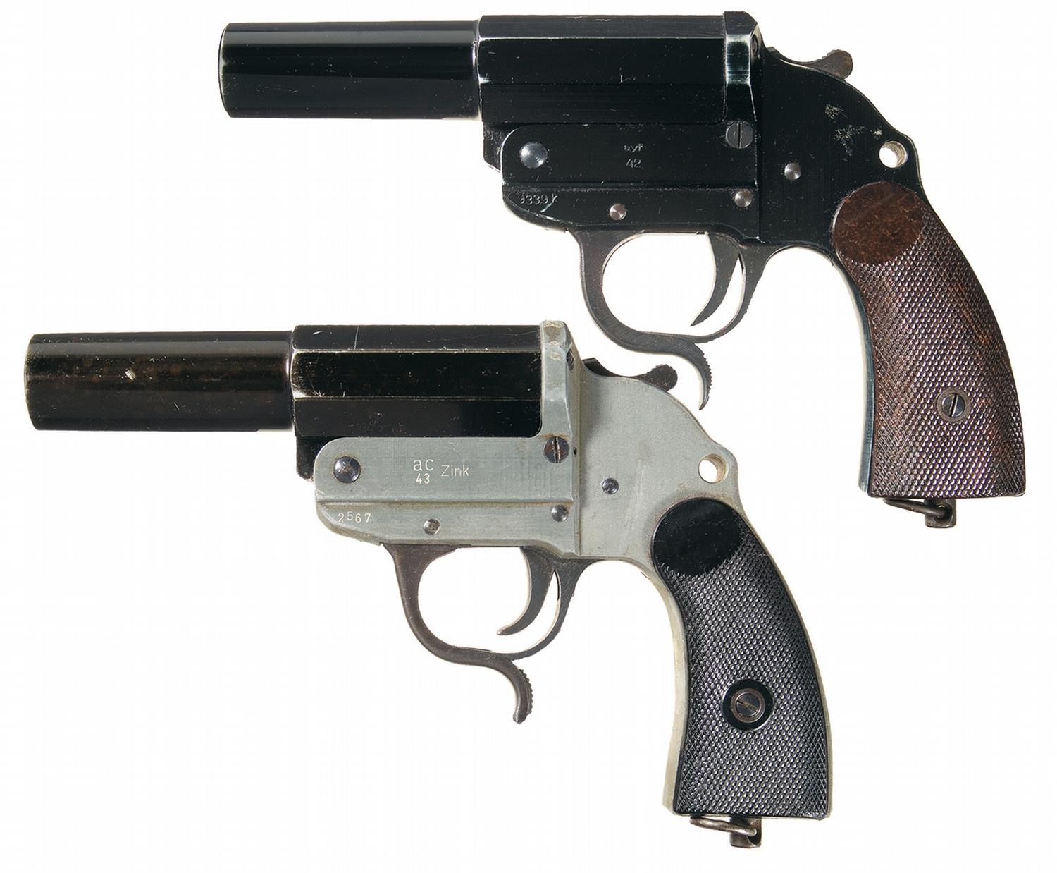 Two WWII Nazi Flare Pistols -A) Erma Werk "ayf/ 42" Single Barrel Flare Pistol B) Scarce Walthe