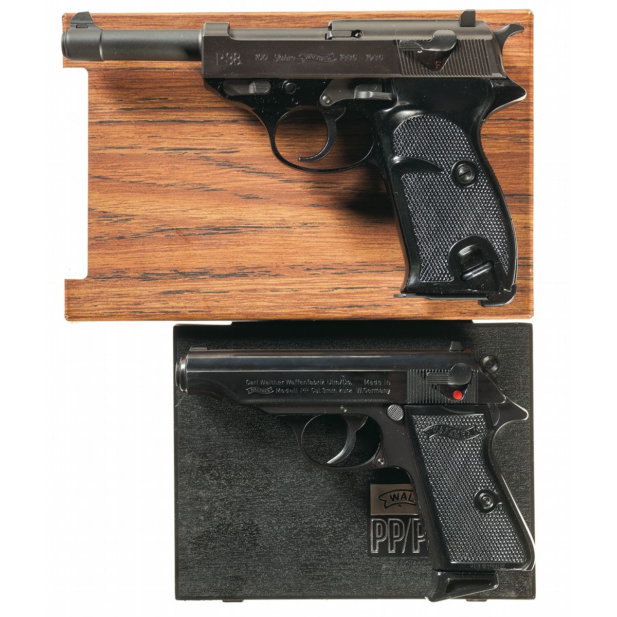 With plastic Walther case numbered to the gun and extra magazine.