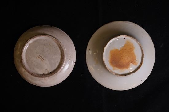 Condition as is, shown in photos. H:2.2cm, 3cm;Diameter:15.1cm, 13.4cm