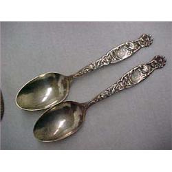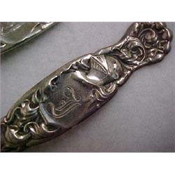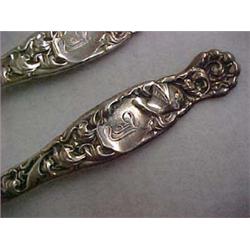 Two sterling silver serving spoons, Whiting Division of Gorham Co., "Heraldic", initialed F