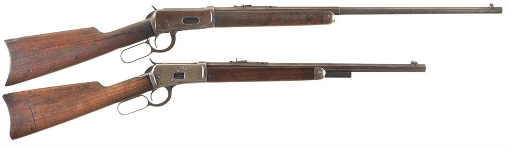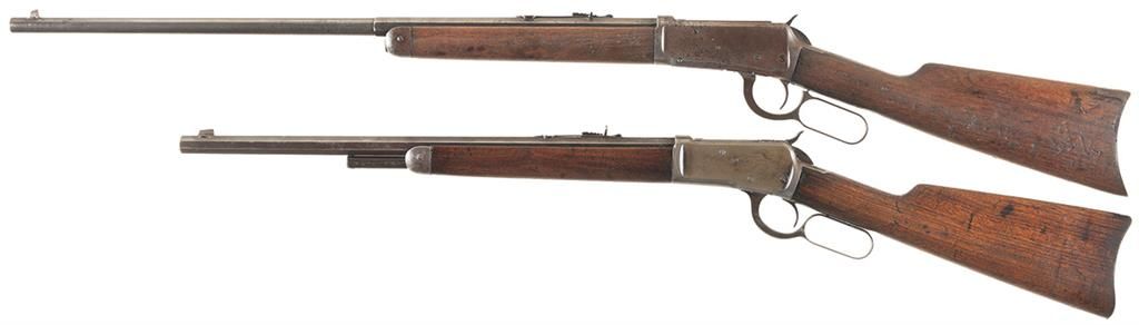 Two Winchester Lever Action Long Arms with Special Order Features -A) Winchester Model 1894 Rifle with Half Octagon Barrel and Button Magazine