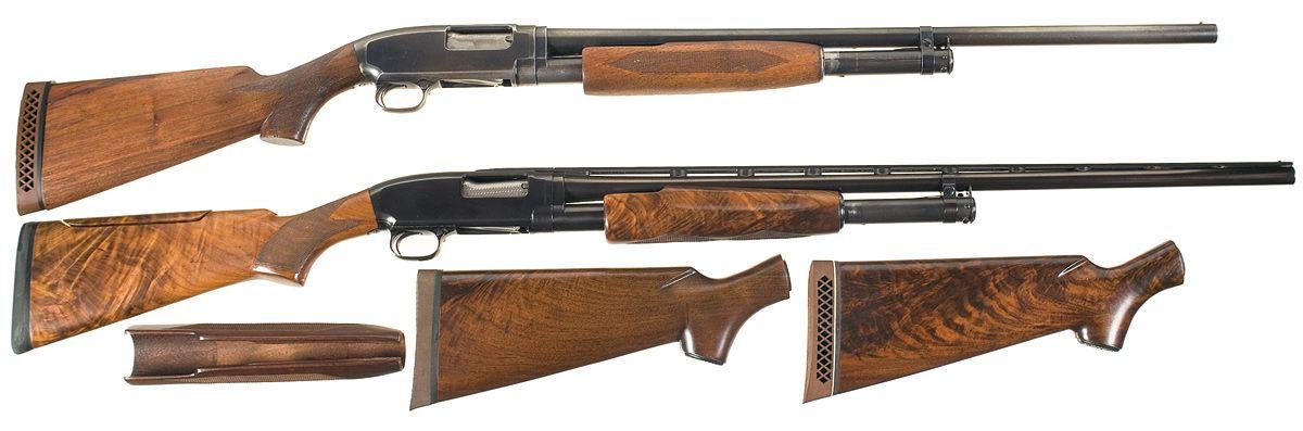 A) Standard markings with Browning vented recoil pad. Complete with an extra checkered forearm and pistol grip stock with Pachmayr recoil pad. 2 3/4" chamber, modified choke with length of pull 13 1/2".