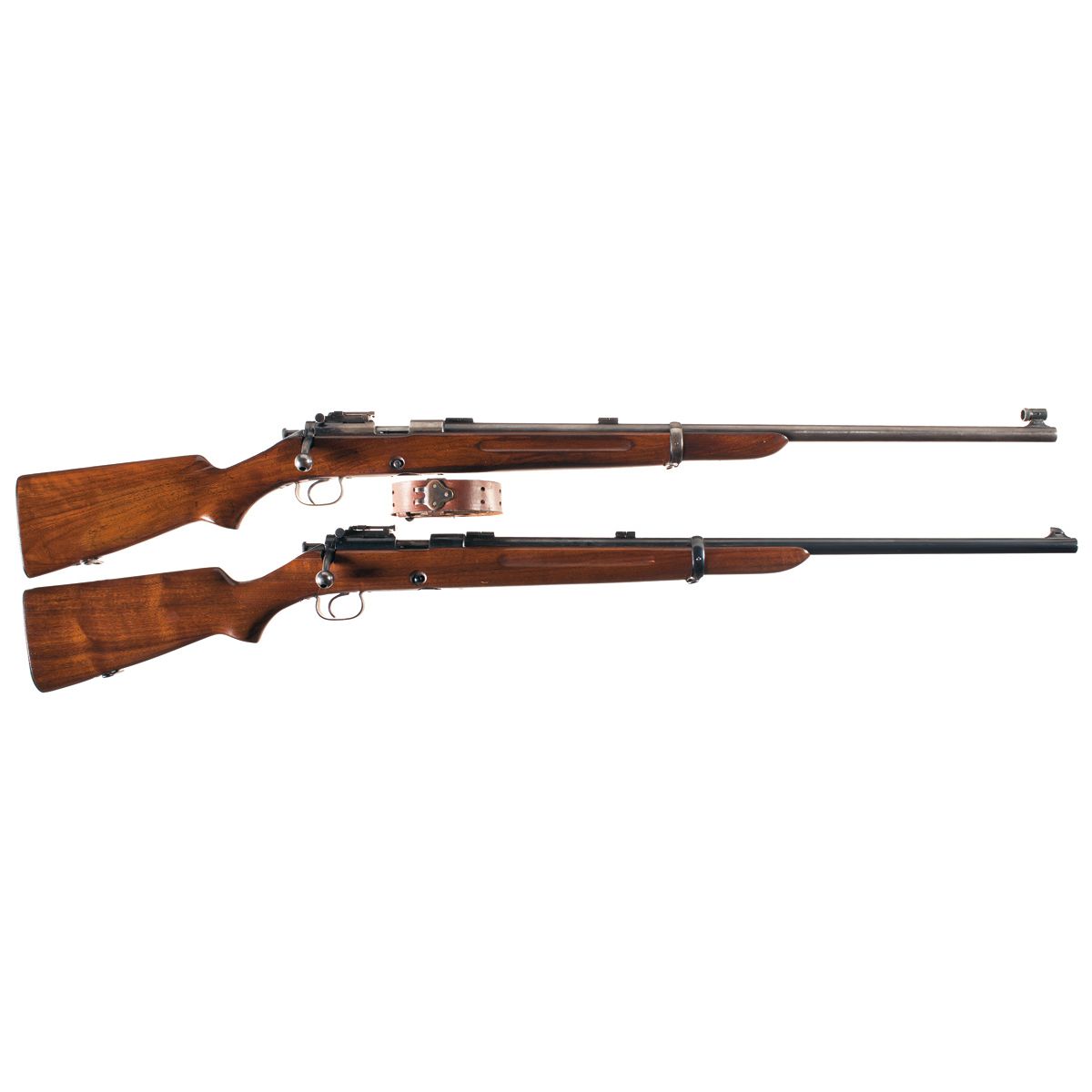 Manufactured between 1929 and 1932. Rear peep sight. Stock is patched at the wrist.