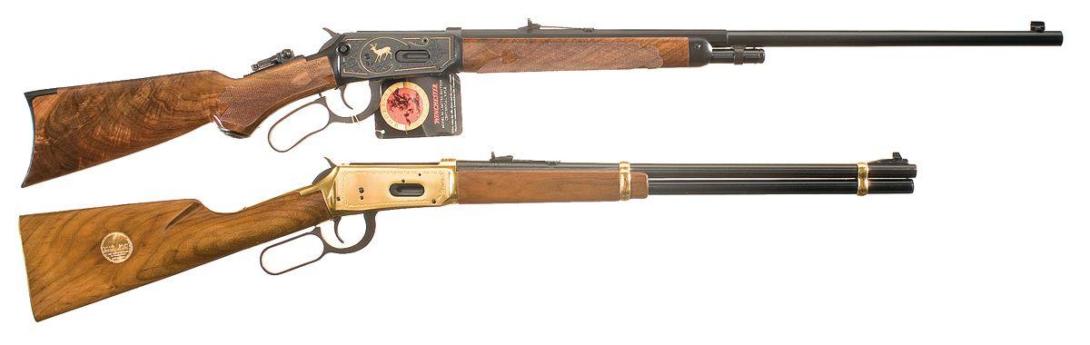 A) Standard commemorative markings and features. Complete with rear tang peep sight and hanging tag.