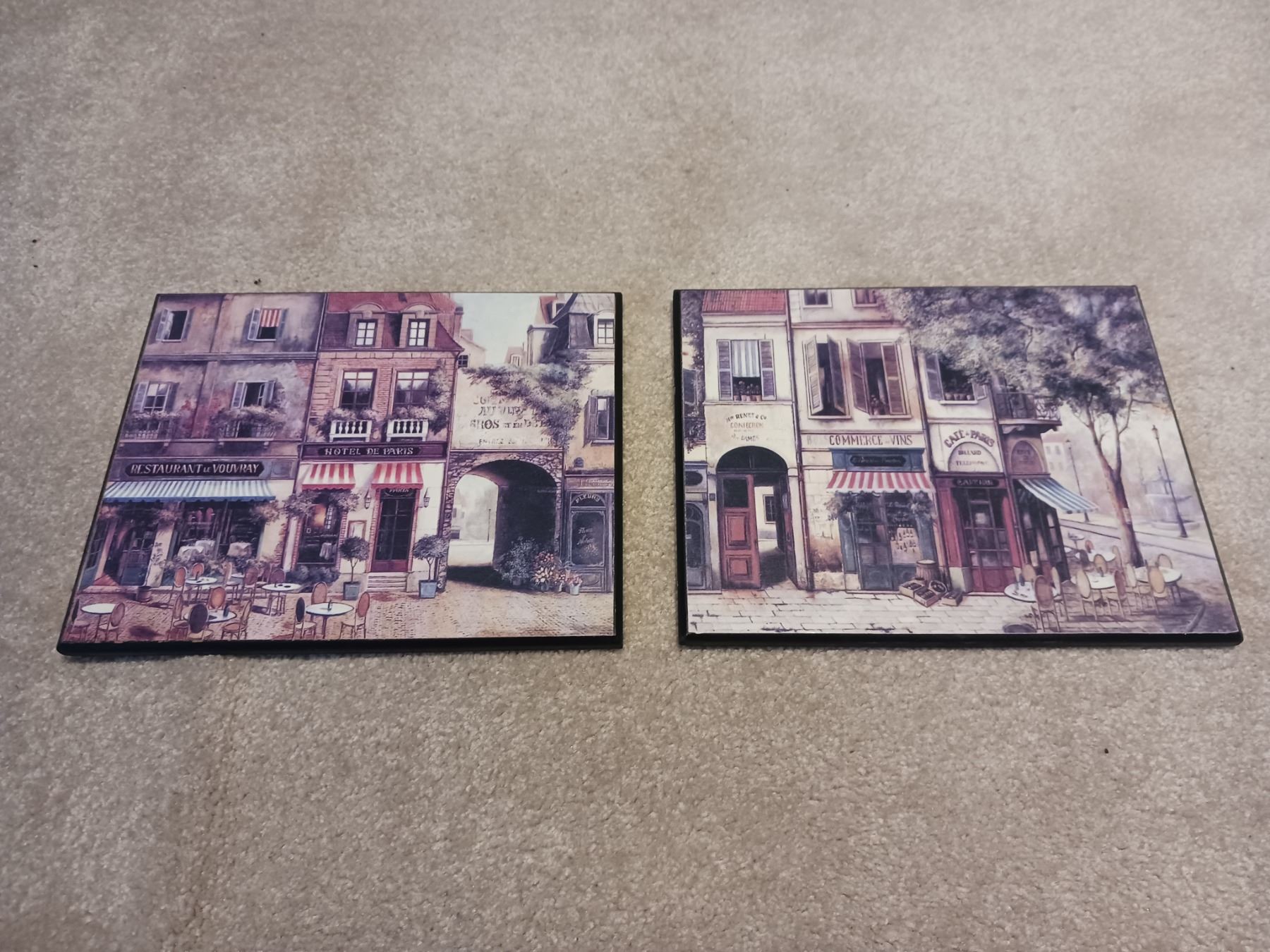 Two Wooden Pictures Of Paris 10"L 8"W *Measurement Is Approximate*