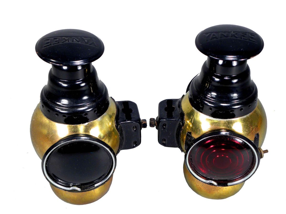 Two Yankee Automobile Lanterns. Red and green lenses. Excellent condition. 8 1/2 inches tall.