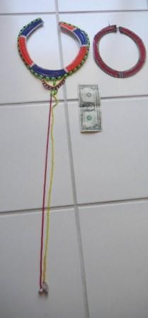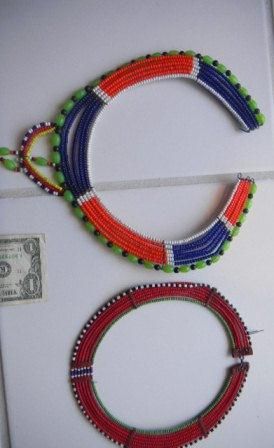 Two Zulu Necklaces. One measures approximately 32 x9 inches and the other one is 7x8 inches. Made glass beads and wire. There is some leather Circa 1950. Shipping $14.50