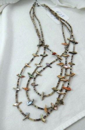 Both necklaces are 12 inches long. One with 3 strands and one with four strands. Items from 1960's. Fine condition. Shipping $14.00