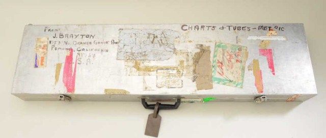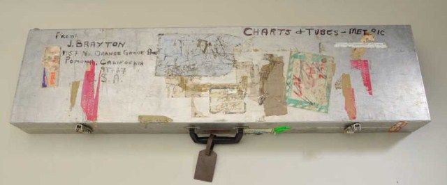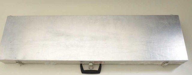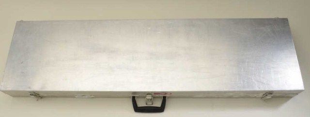 Two aluminum rifle cases. First case measures approx. 48-1/2” by 16” wide by 4-1/2” deep, second case measures 47” by 12” by 4-1/2” deep. Both heavily used but serviceable. Est.;$150-$300.