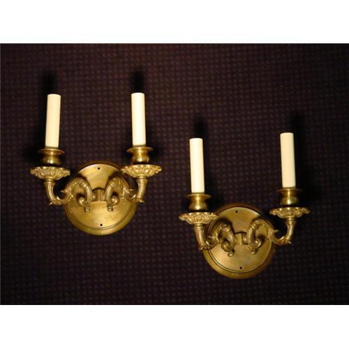 Circa 1920 A pair of bronze two arm sconces in ecsellent condition .
