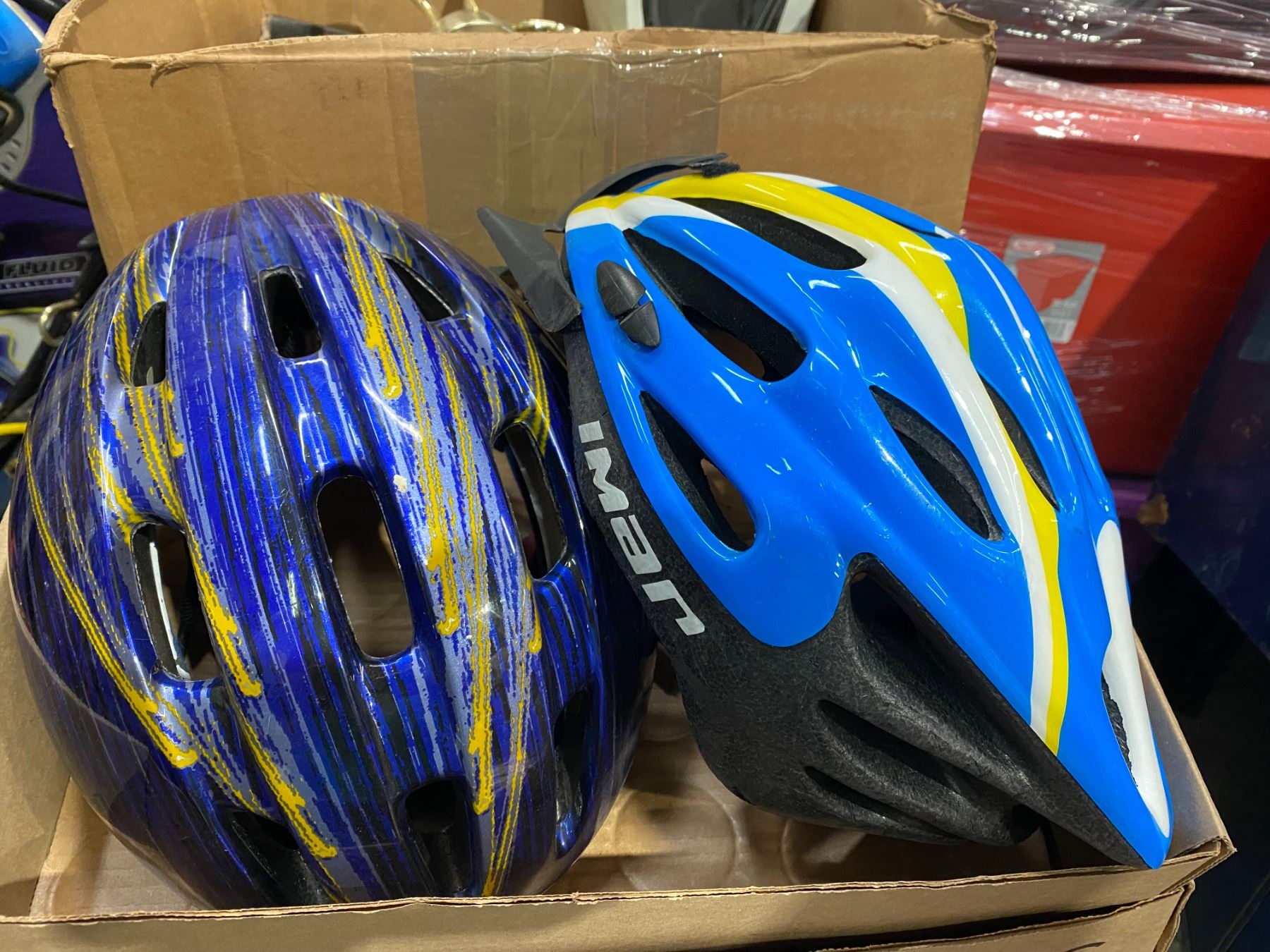 Two bike helmets
