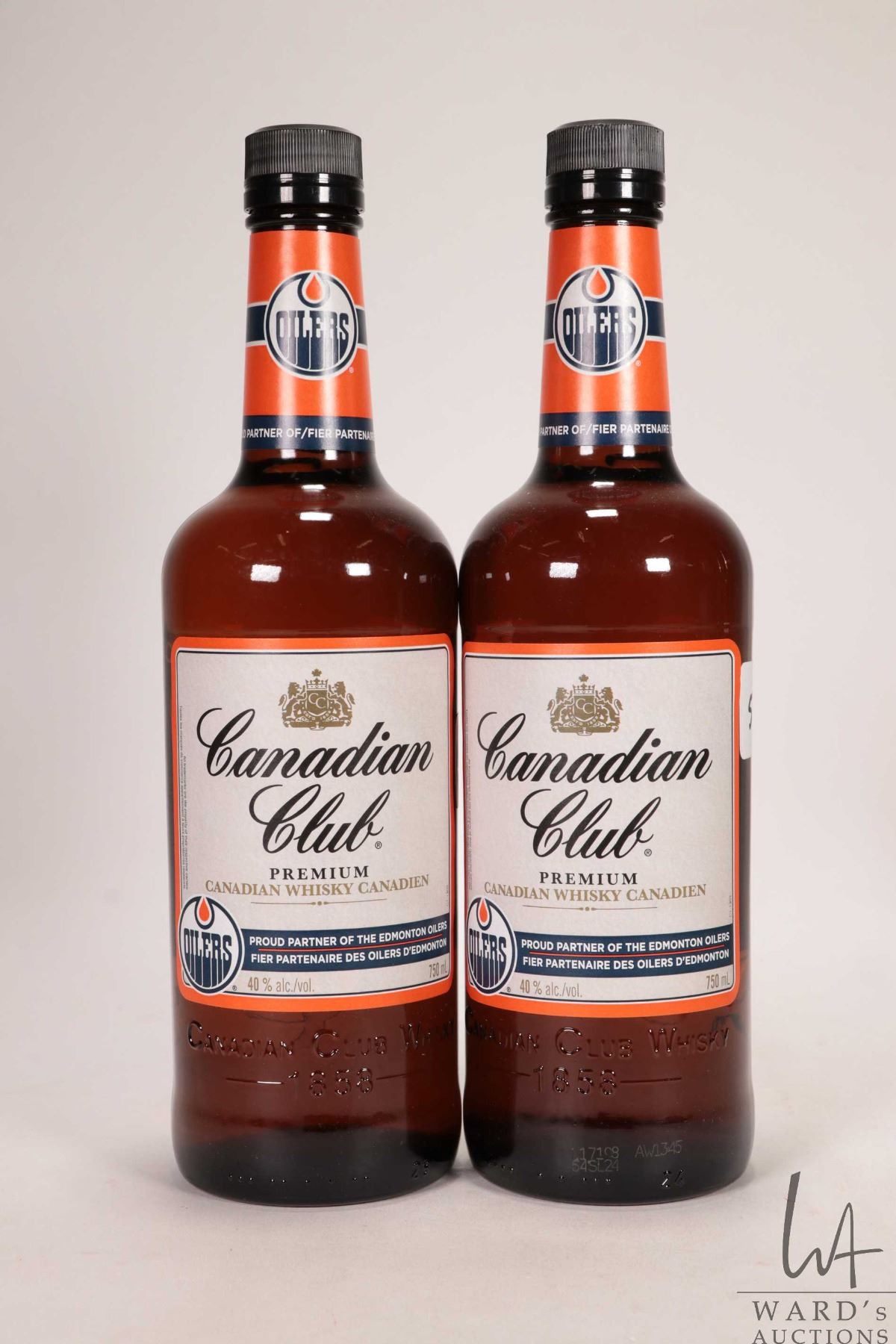 Two bottles of Canadian Club / Canadian Whisky / Edmonton Oilers Edition / 750ml / 40% ABV Note: Alcohol cannot be insured by any courier in Canada. Local pick up is recommended. Canadian bidders only