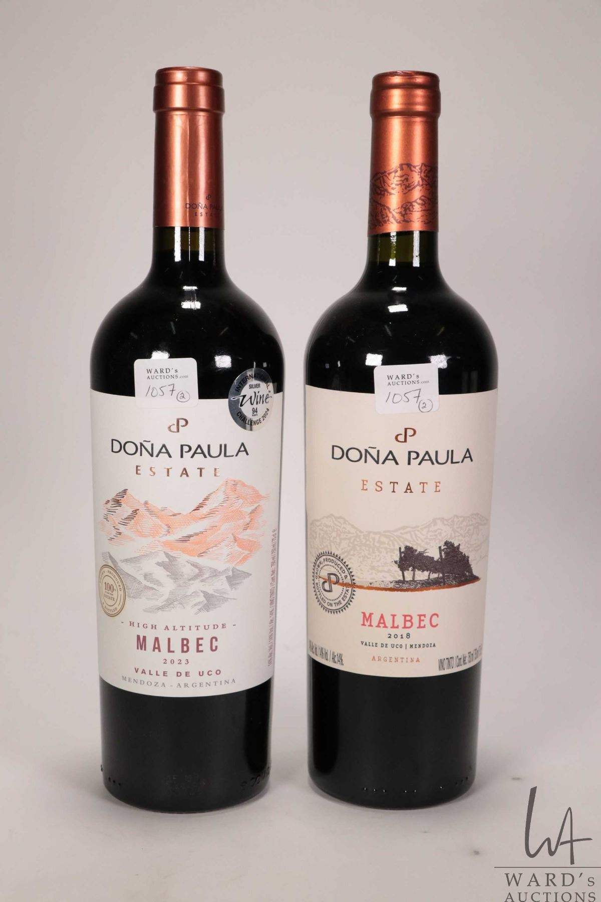 Two bottles of Dona Paula Malbec including High Altitude/ 2023/ Argentina /750ml/ 14% ABV and 2018/