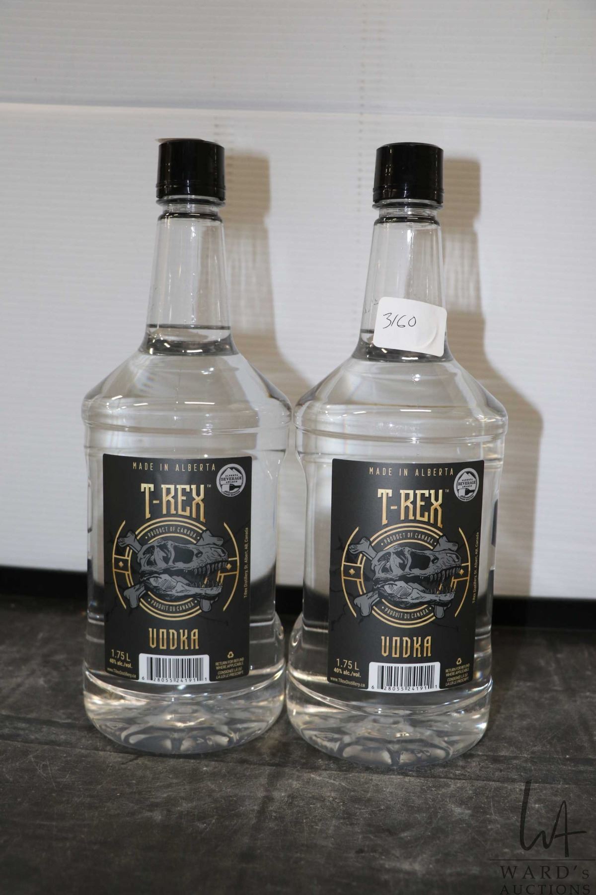 Two bottles of T-Rex Vodka 1.75L / 40% ABV Note: Alcohol cannot be insured by any courier in Canada. Local pick up is recommended. Canadian bidders only
