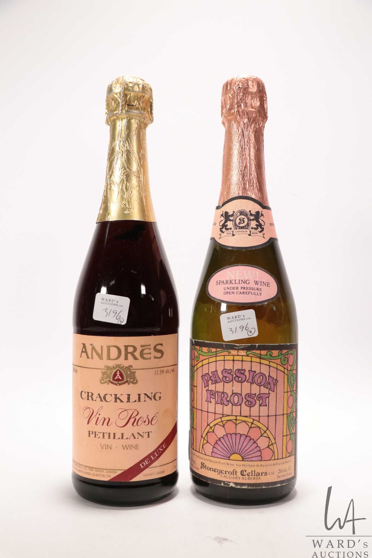 Two bottles of sparkling wine including Andres Cracking Vin Rose/ 750ml/ 11.5% ABV and Stoneycroft Sellers/ 26 oz./ ? ABV Note: Alcohol cannot be insured by any courier in Canada. Local pick up is recommended. Canadian bidders only.