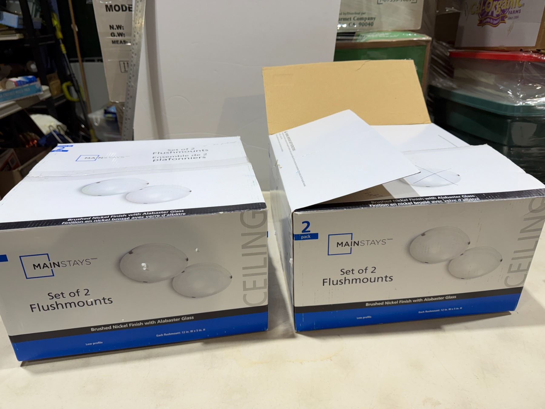 Two boxes with three light fixtures