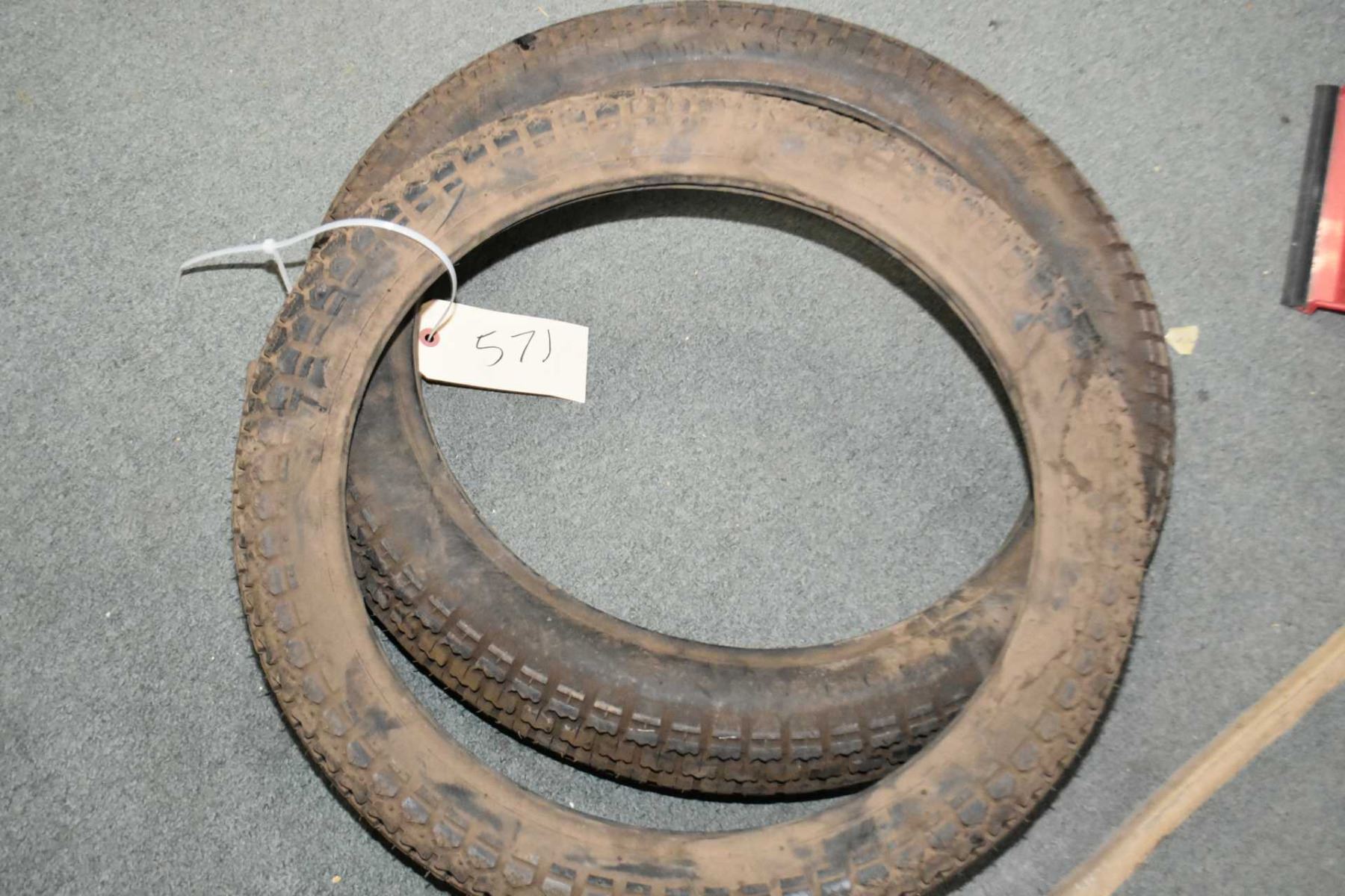 Two brand new motorcycle tires including 2.5-17 and 3.00-17- AUCTION HOUSE WILL NOT PROVIDE SHIPPING FOR THIS ITEM. BUYER MAY ARRANGE THEIR OWN COURIER.