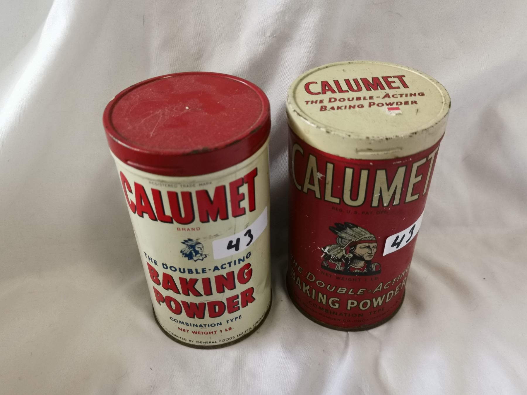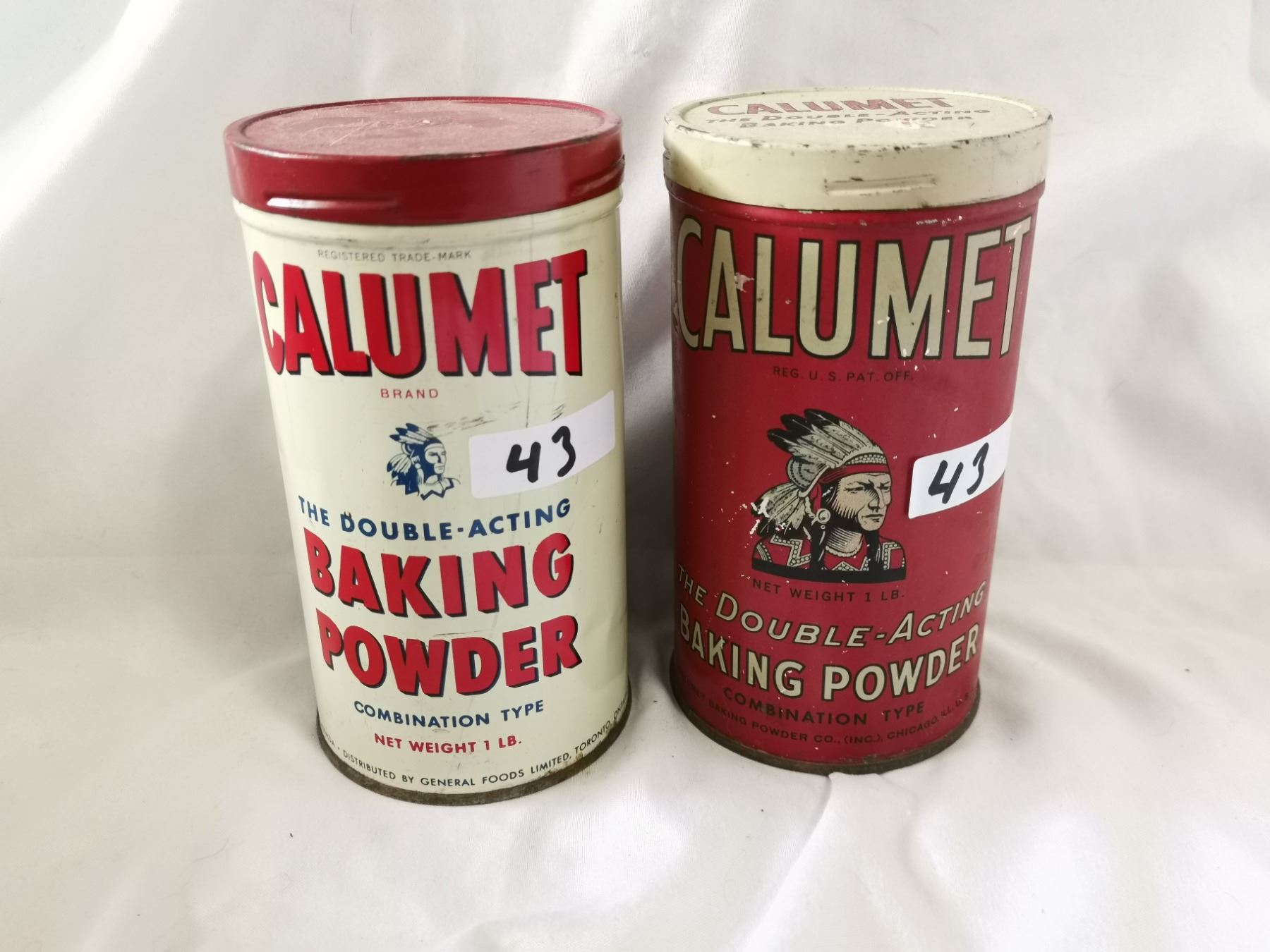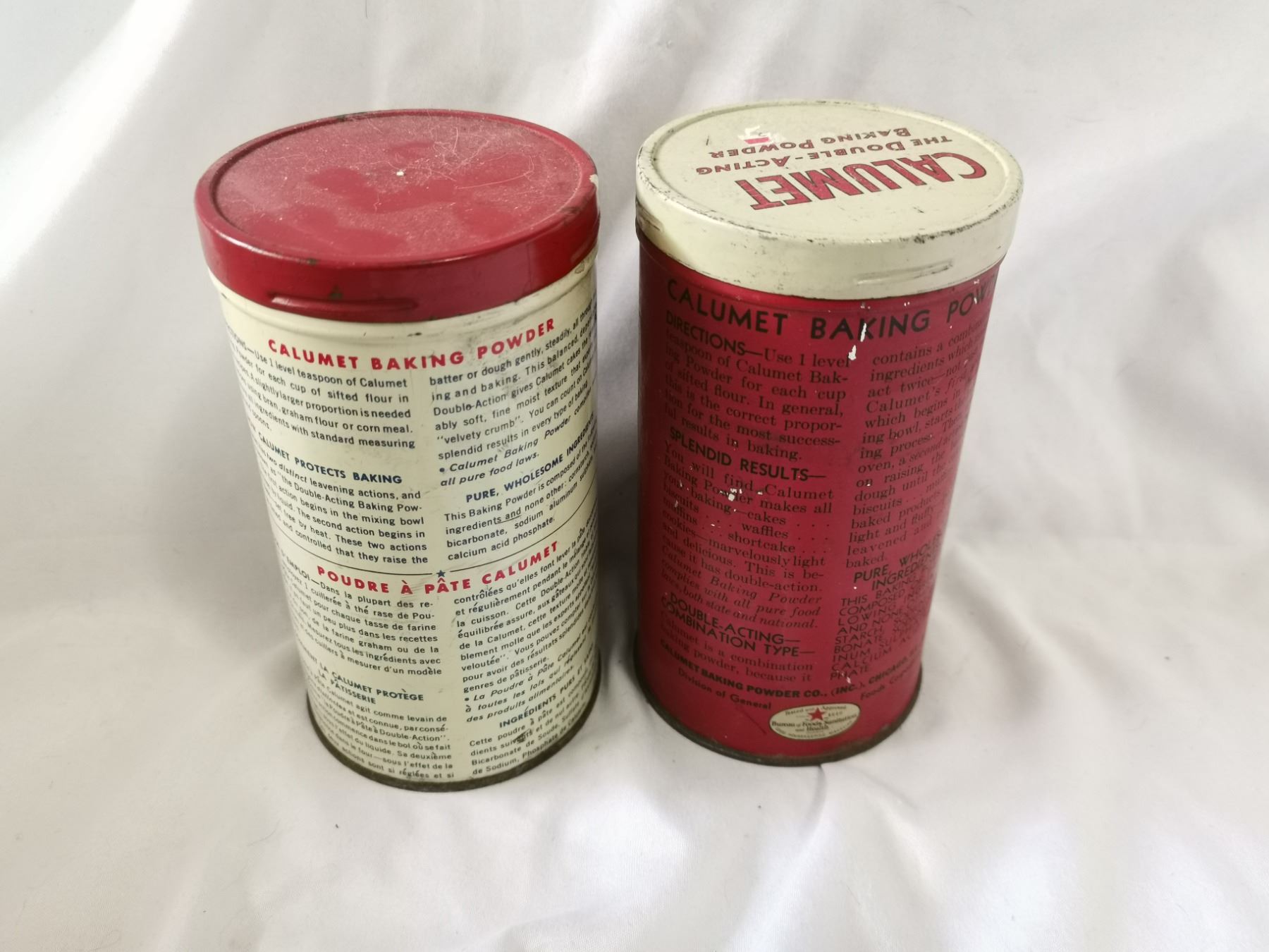 Two calumet baking powder tins, smaller size