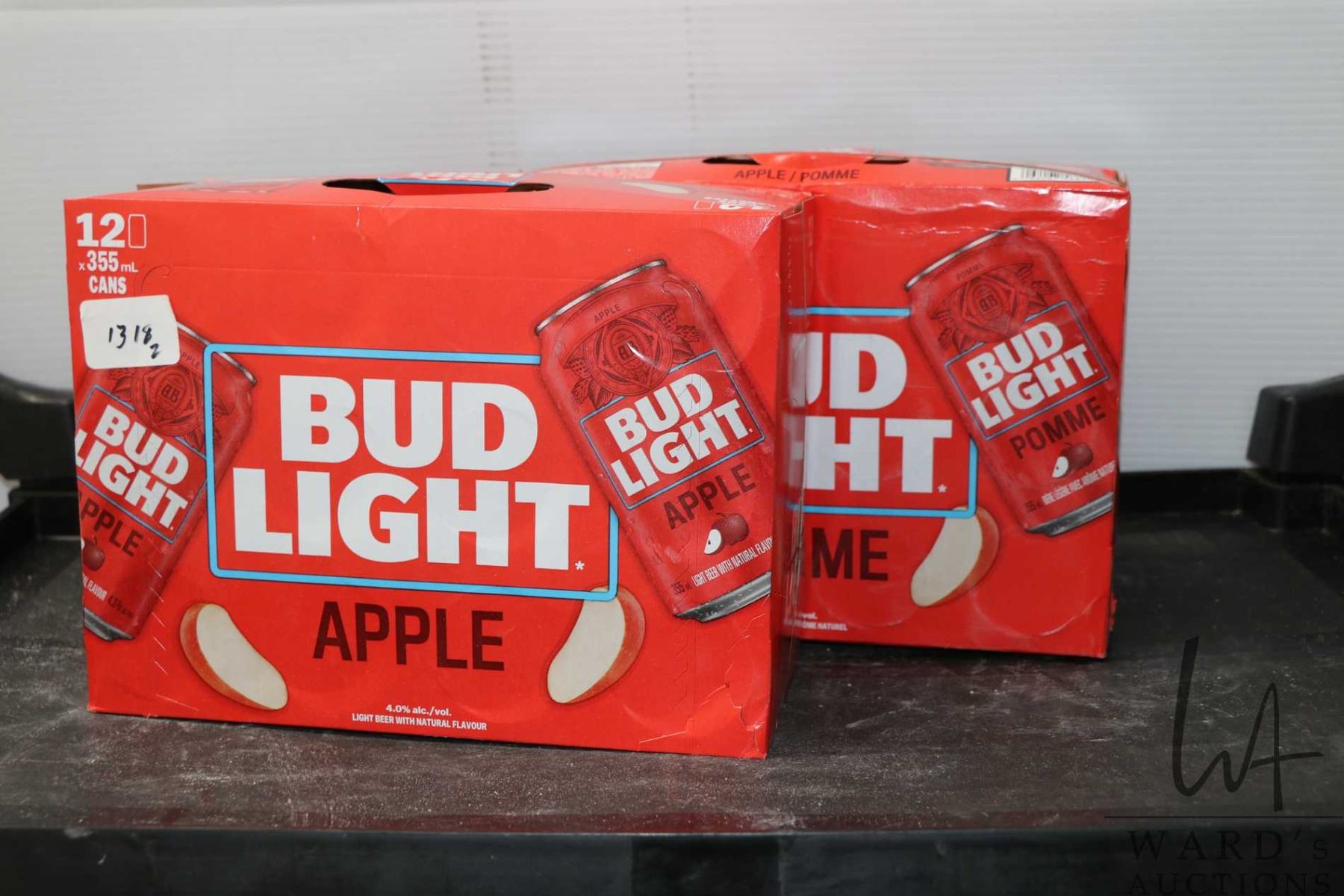 Two cases of Bud Light Apple/ 12 count X 355ml/ 4.0% ABV Note: Alcohol cannot be insured by any courier in Canada. Local pick up is recommended. Canadian bidders only