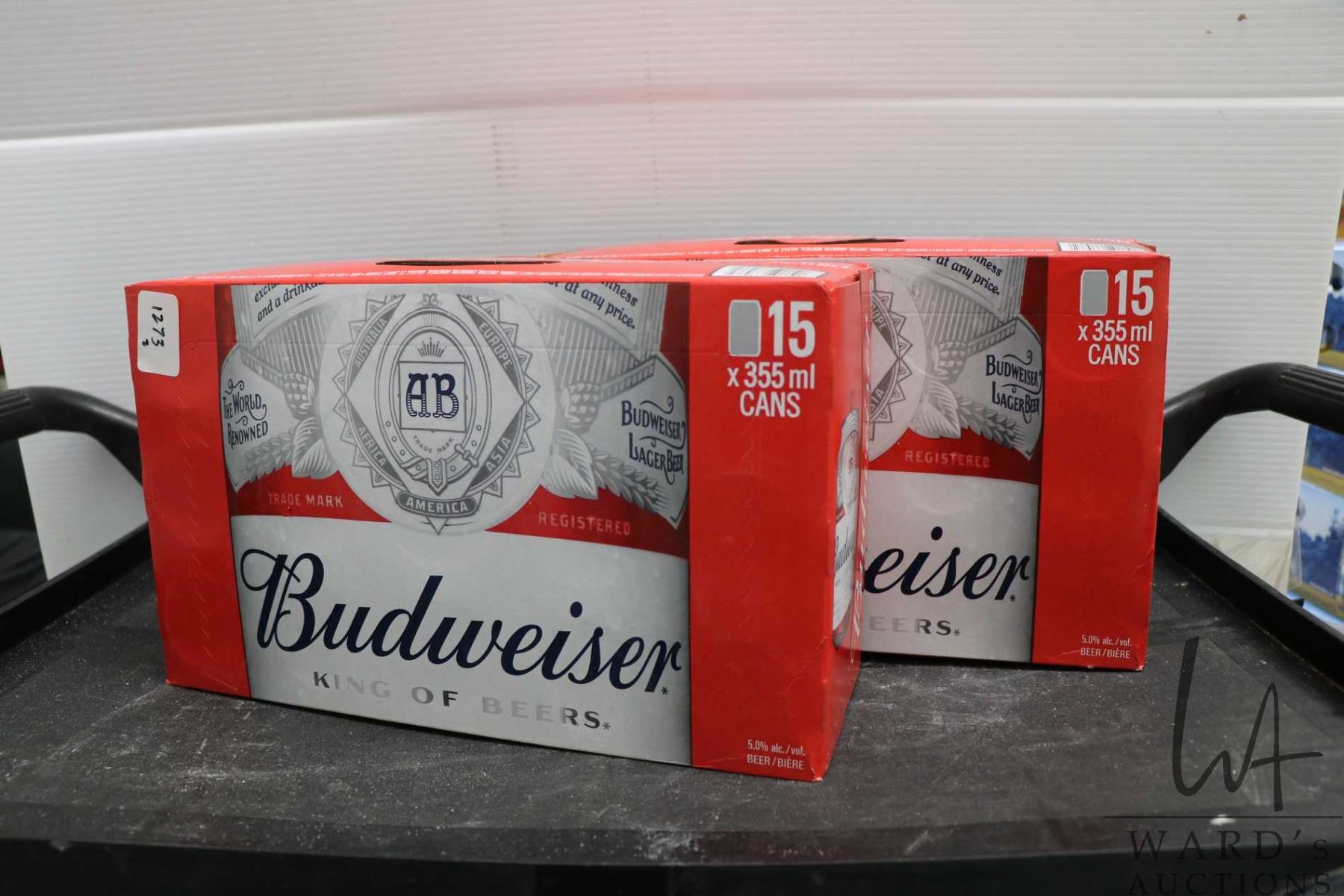 Two cases of Budweiser Beer/ each 15 count X 355ml/ 5.0% ABV Note: Alcohol cannot be insured by any courier in Canada. Local pick up is recommended. Canadian bidders only.