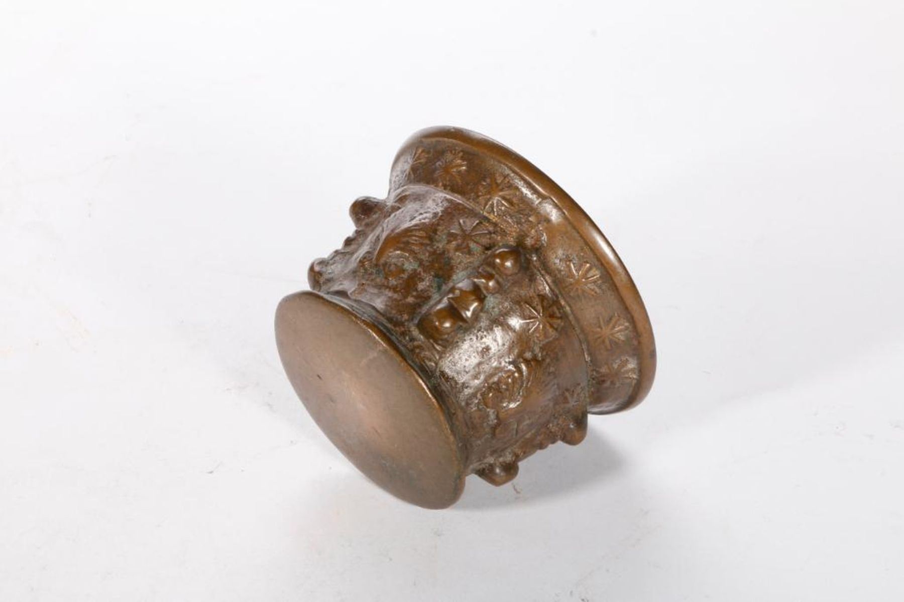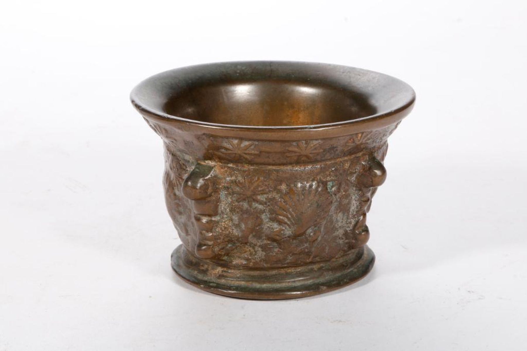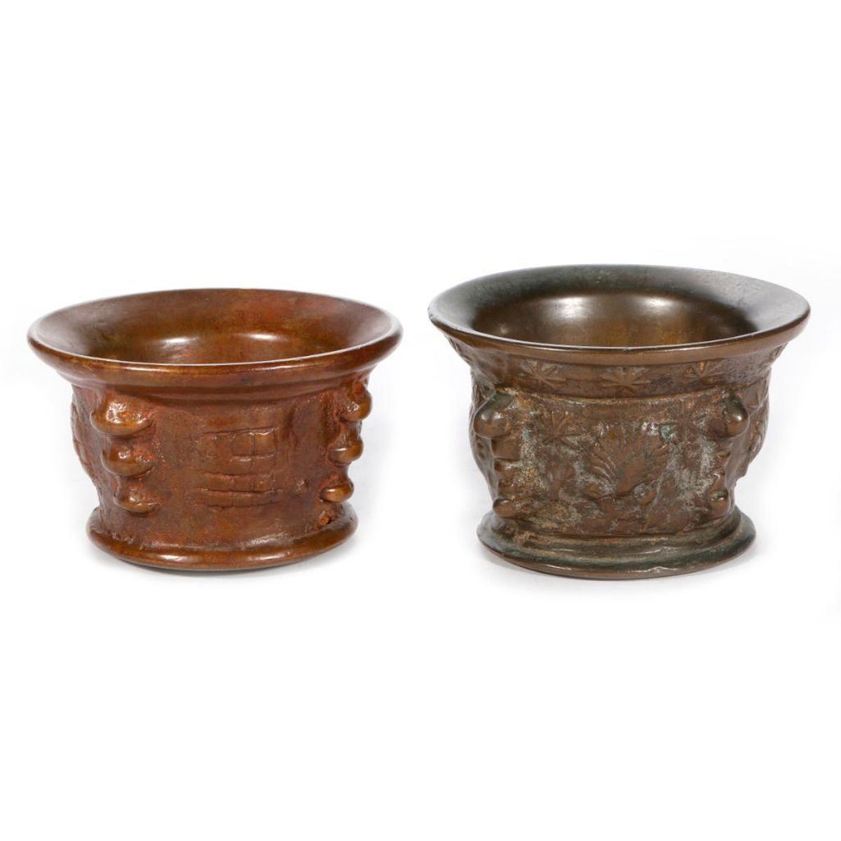 Two Italian cast bronze mortars circa 16th century, largest measuring 3 1/2 inches high x 5 diameter