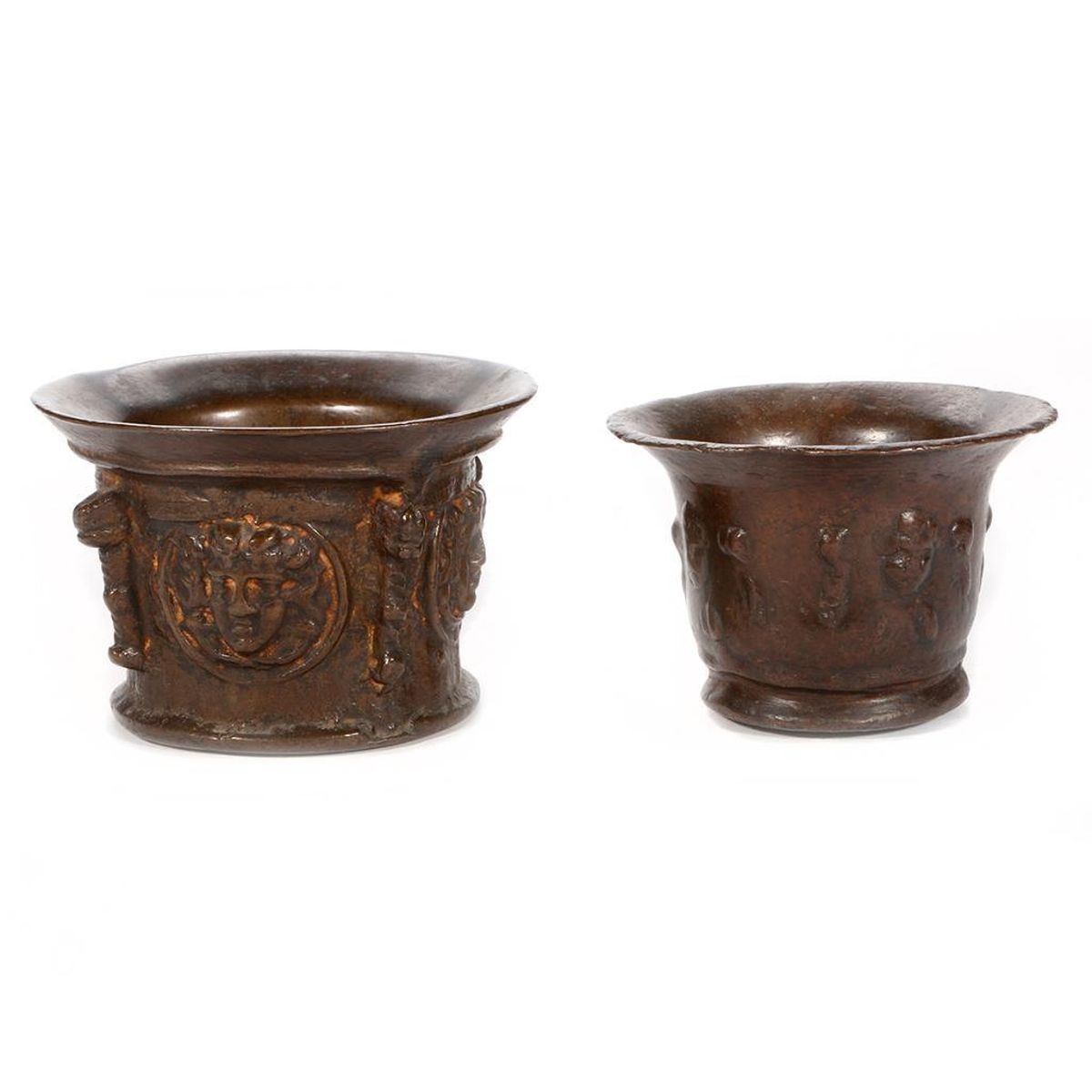 Two Italian cast bronze mortars circa 16th century the largest measuring 4 inches high x 5 3/4 diameter.